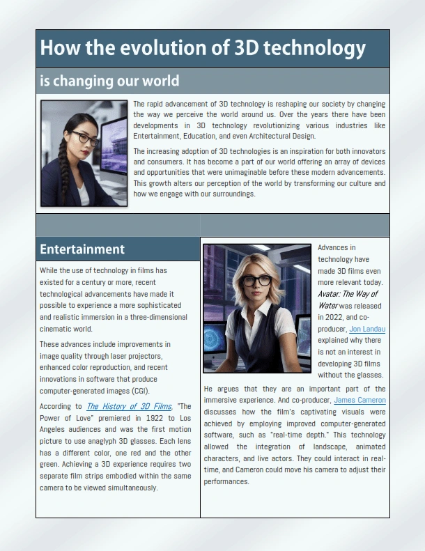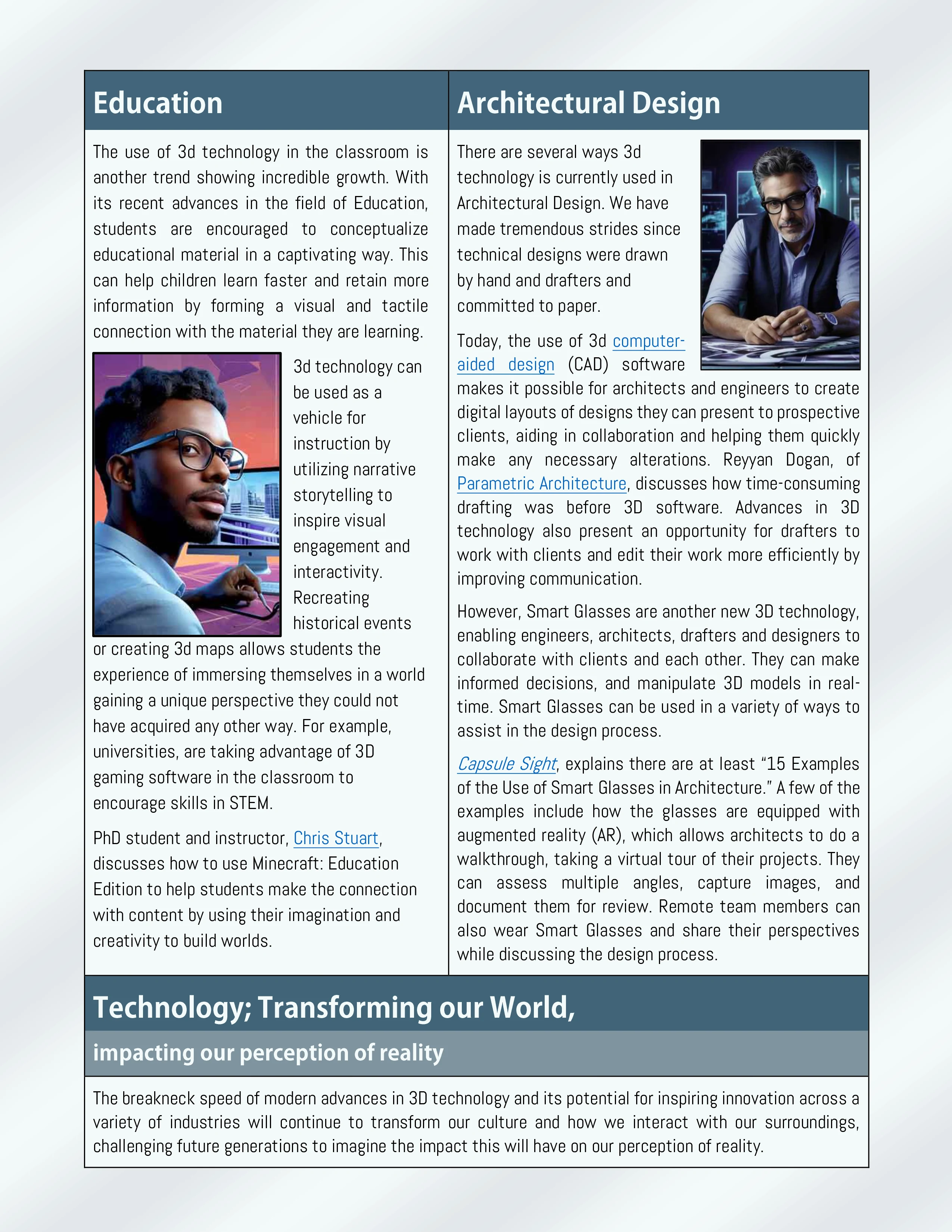 This is a Digital Marketing article that explores how3D technology is changing the following industries: Entertainment, Education, and Architectural Design.