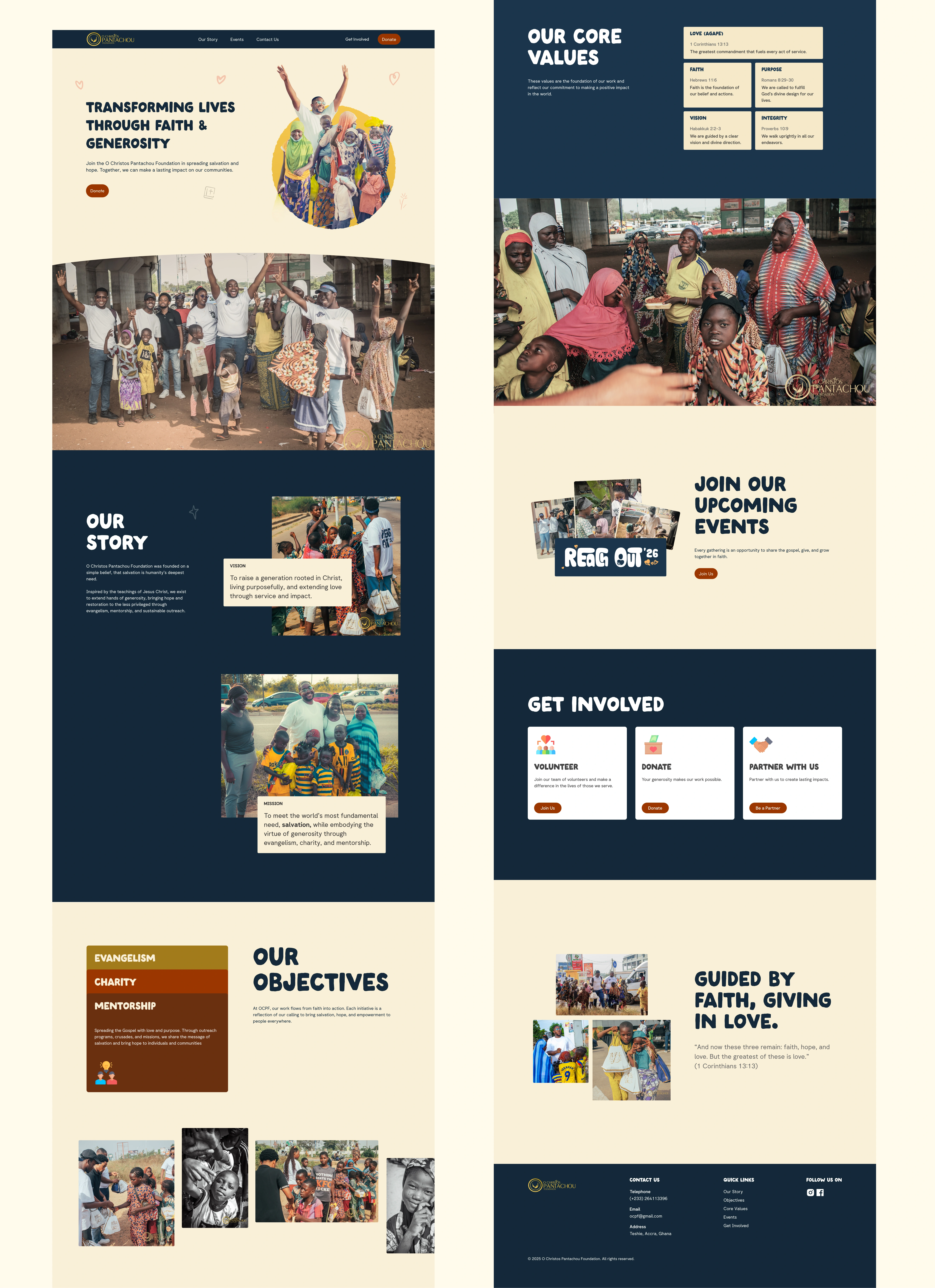 OCPF (O Christos Pantachou Foundation) is a Christian charity focused on community support, donations, and volunteer work. They needed a simple, modern single-page website to communicate their mission, showcase upcoming events, and make it easier for people to donate or get involved.