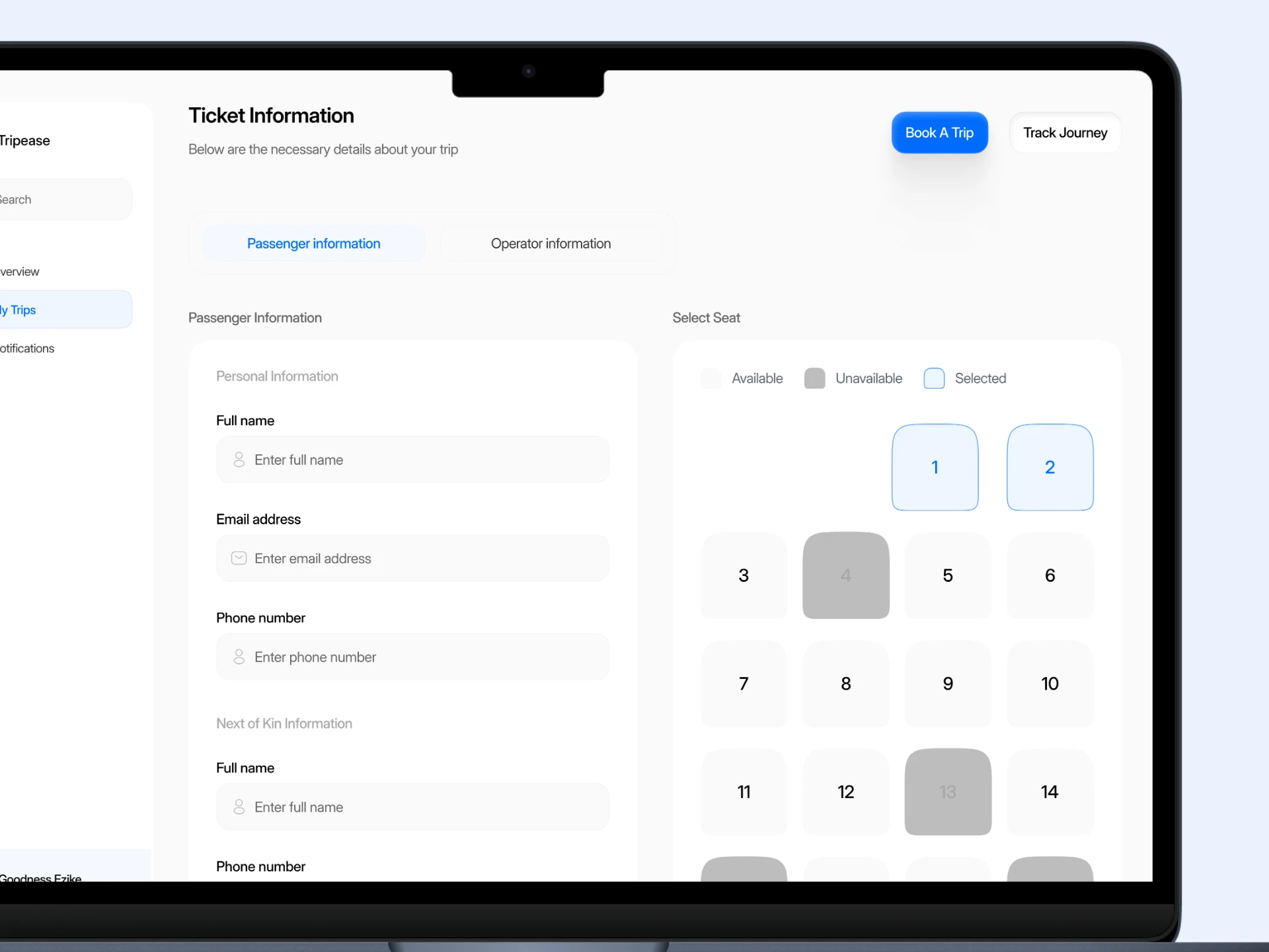 I designed and helped shape TripEase, a digital platform that simplifies intercity bus travel across Nigeria by enabling travelers to search, compare, and book bus tickets online. The platform also provides transport operators with a dedicated dashboard to manage routes, schedules, and bookings efficiently.