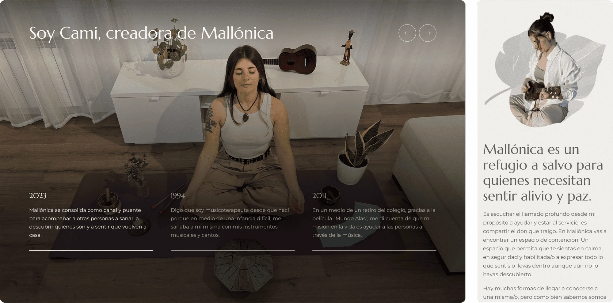 Mallónica is the digital home of a therapist who bridges sound, energy, and self-knowledge. The project combines gentle visuals and thoughtful structure to reflect a healing experience rooted in music.