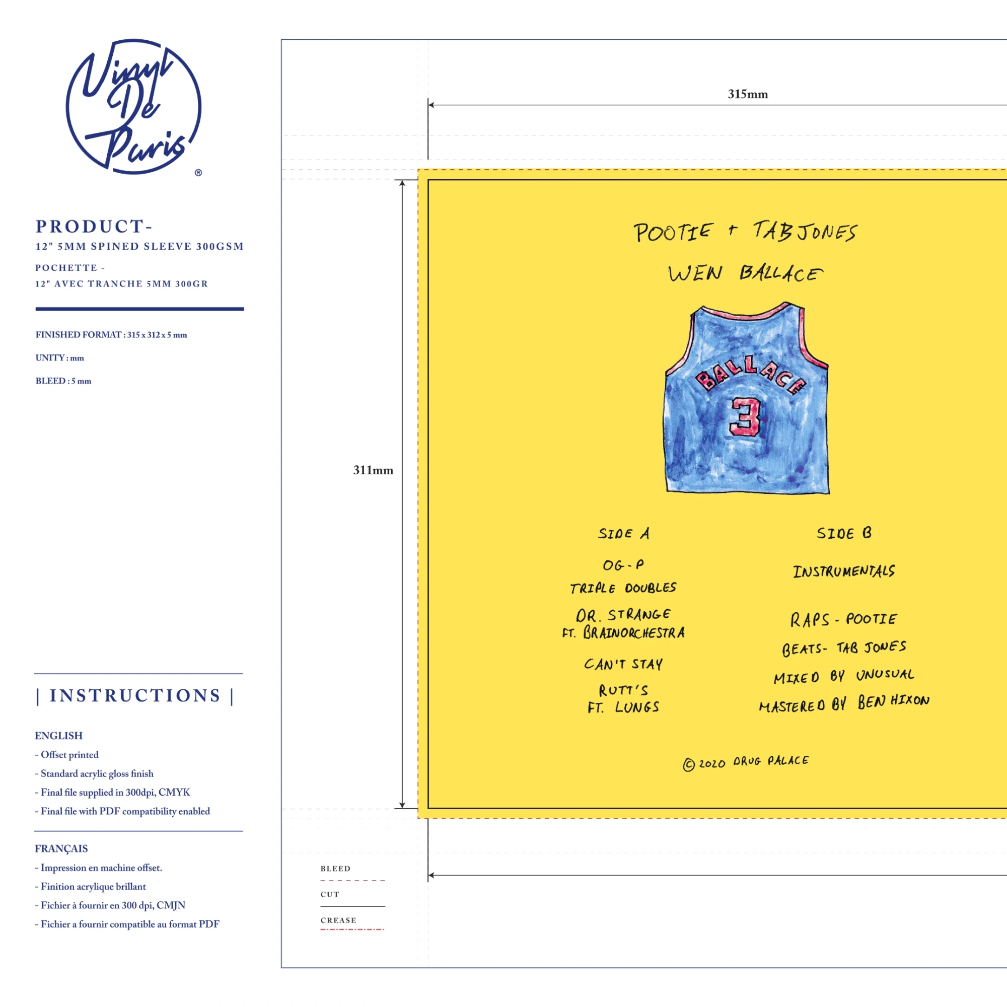 WEN BALLACE: Vinyl Packaging Layout for Printer; All Details