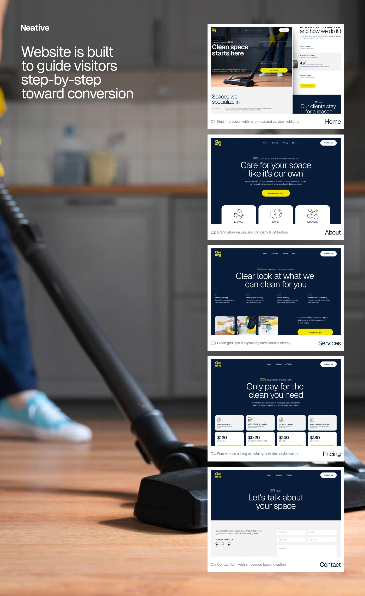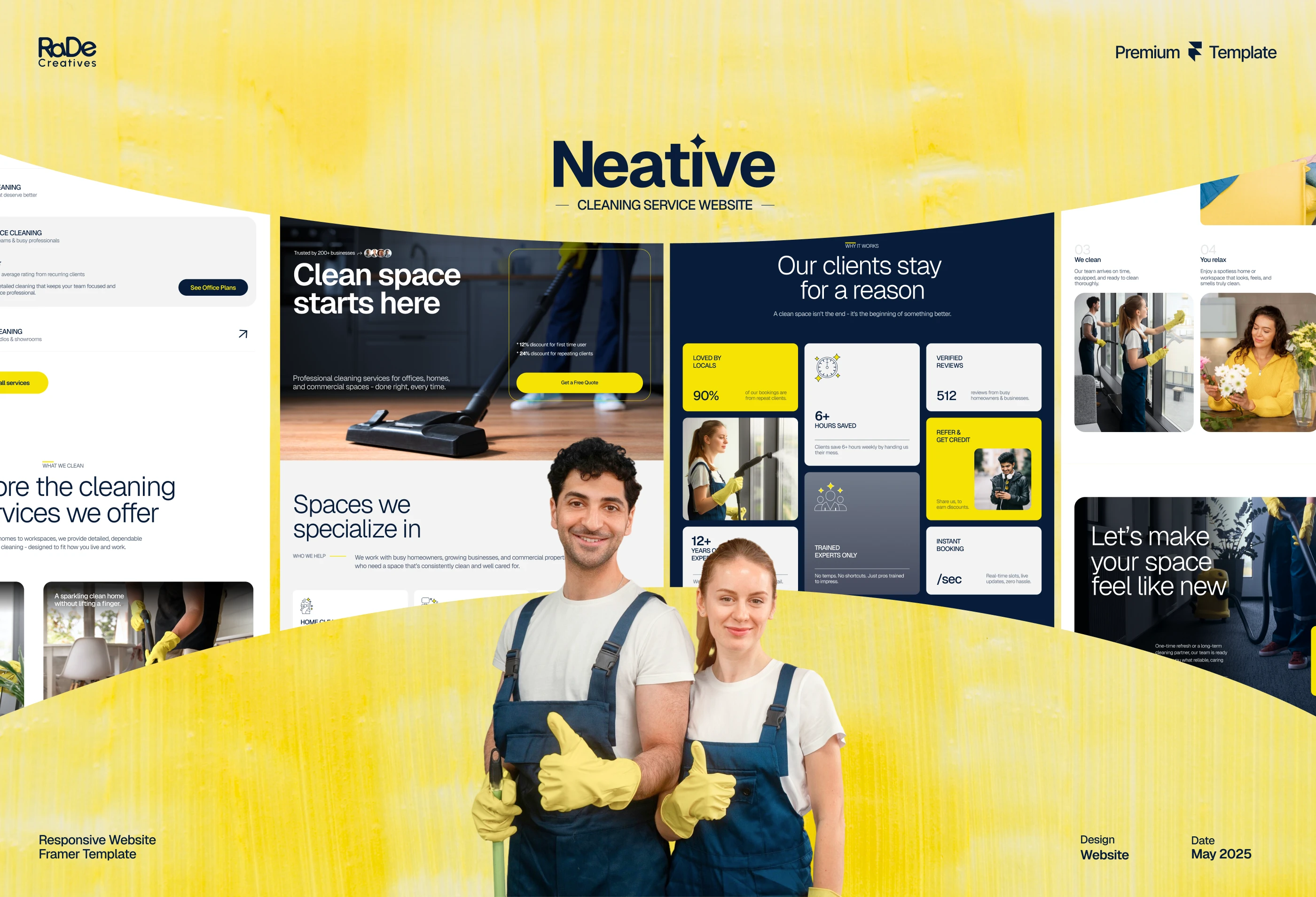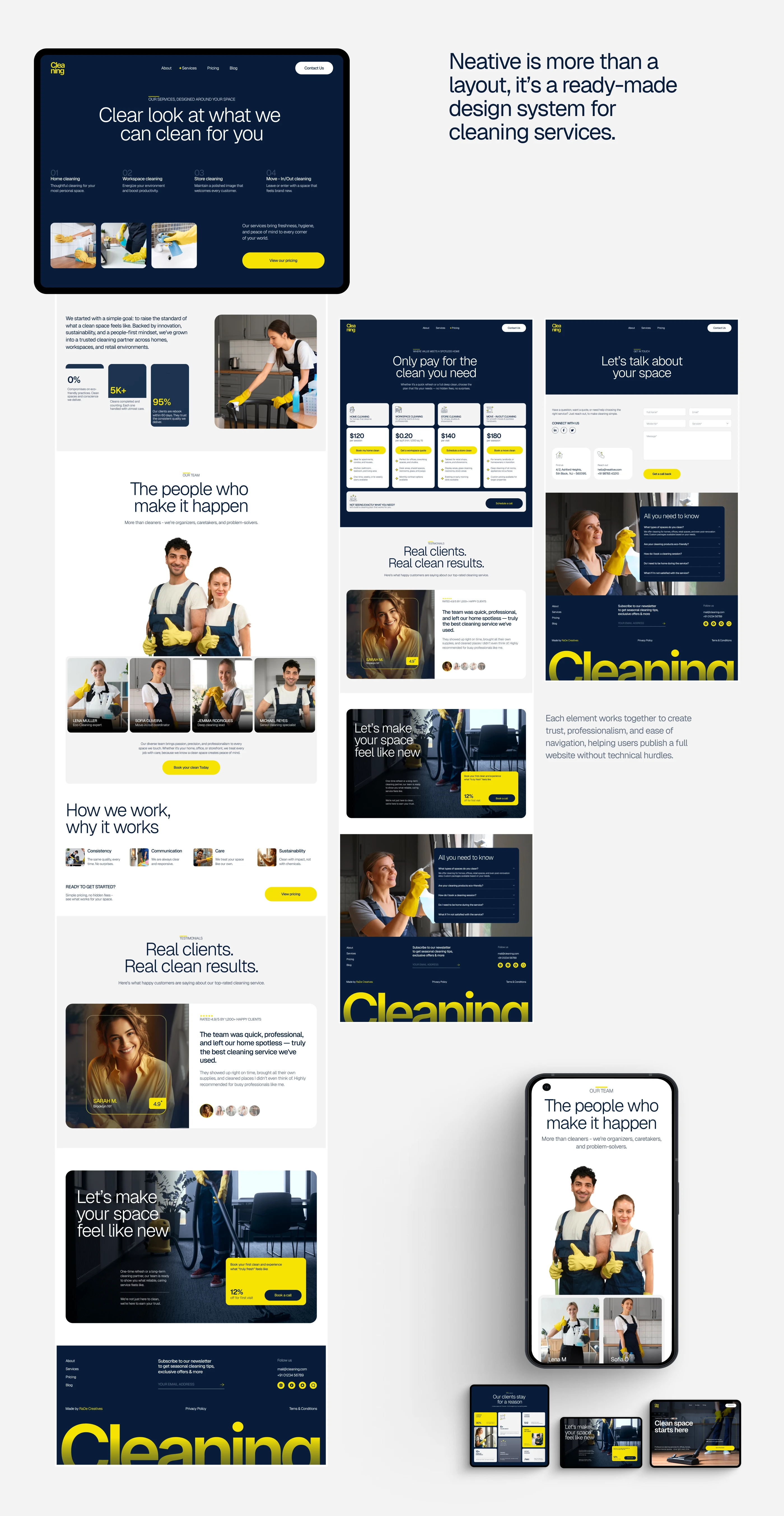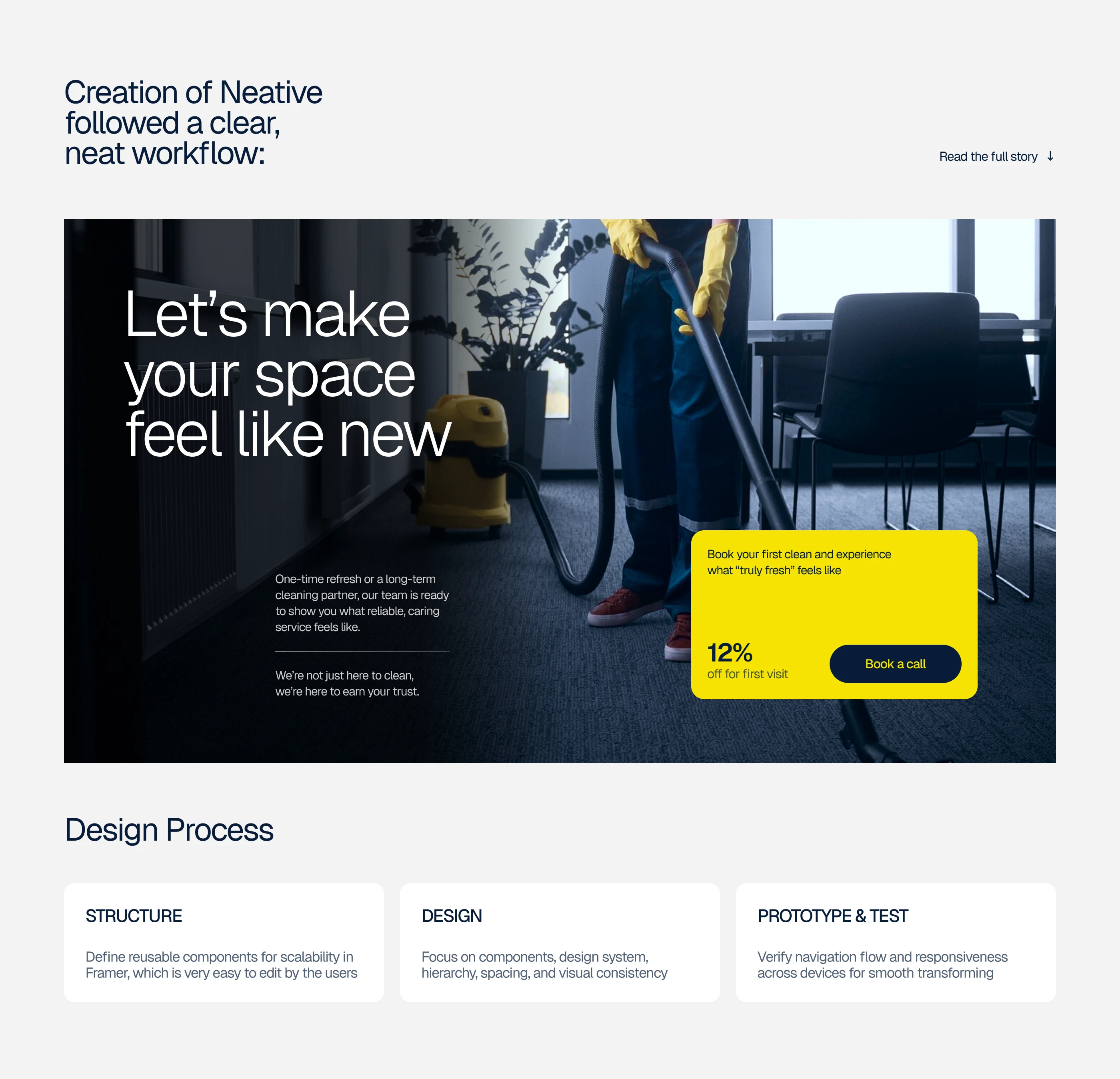 I designed Neative, a clean and conversion-focused Framer template built for cleaning and maintenance service brands that want to look professional, build trust, and get more bookings online.