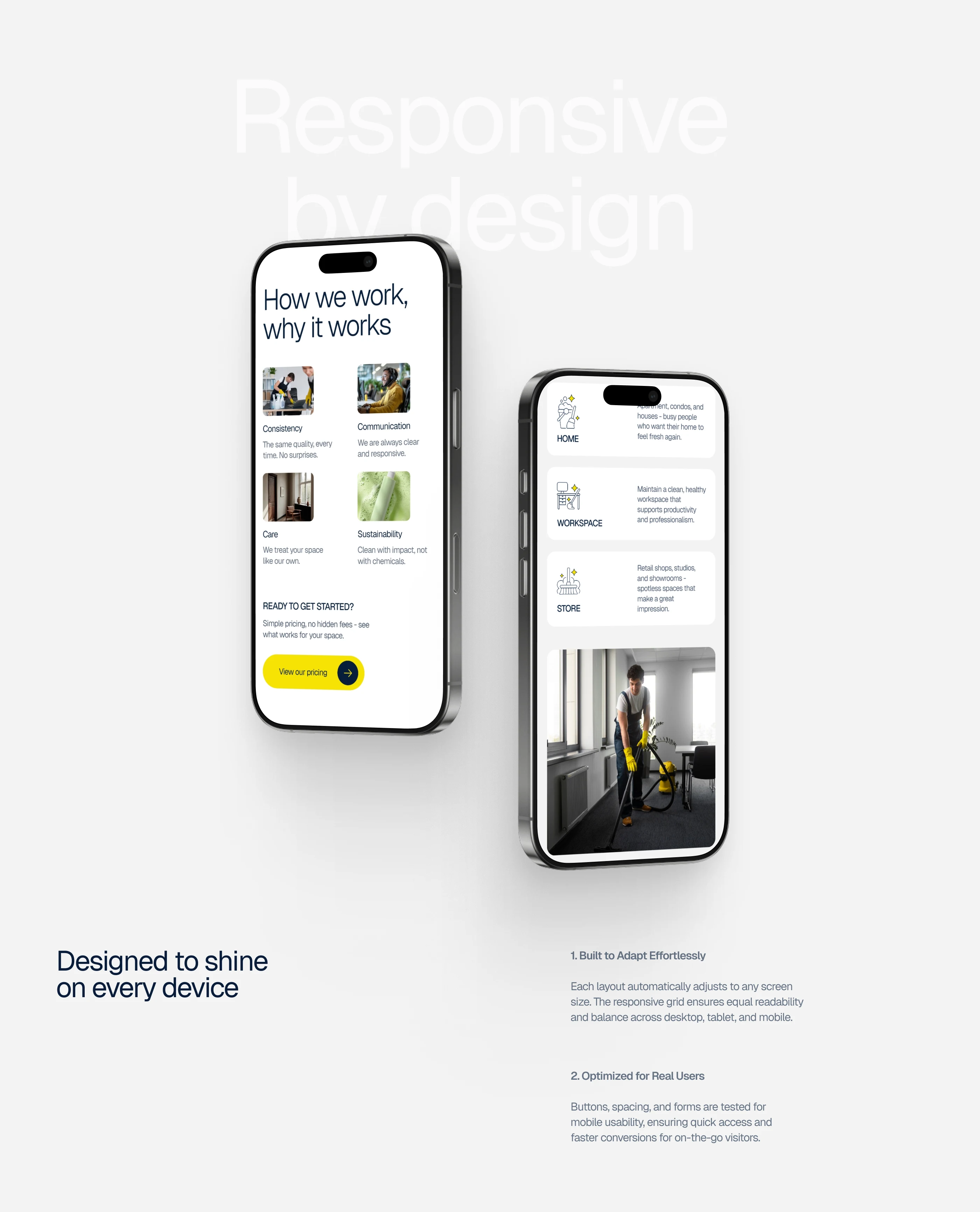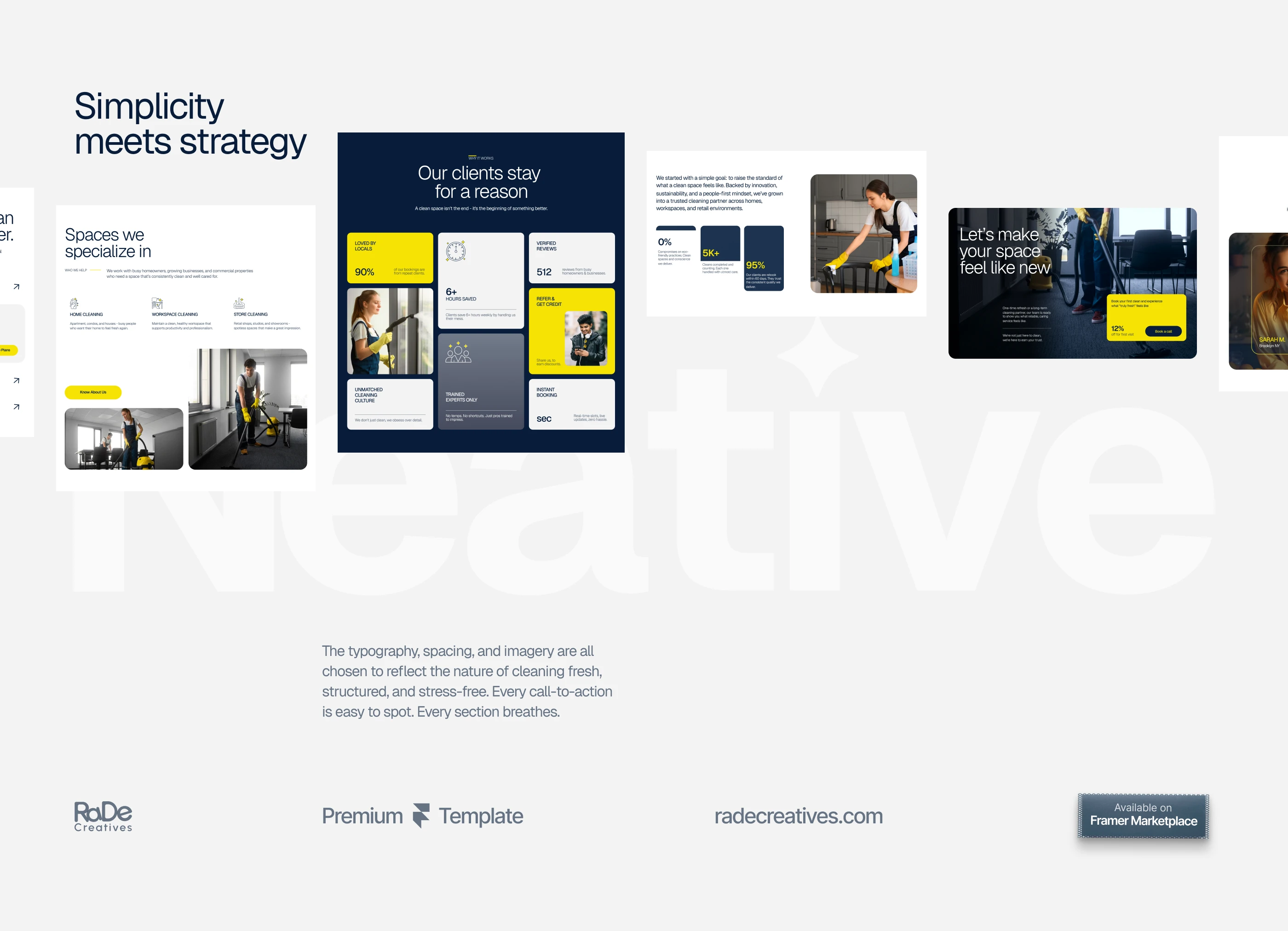 Designed a clean, modern Framer template for cleaning and home-service brands. Built for trust, clarity, and conversions ready to customize and launch.