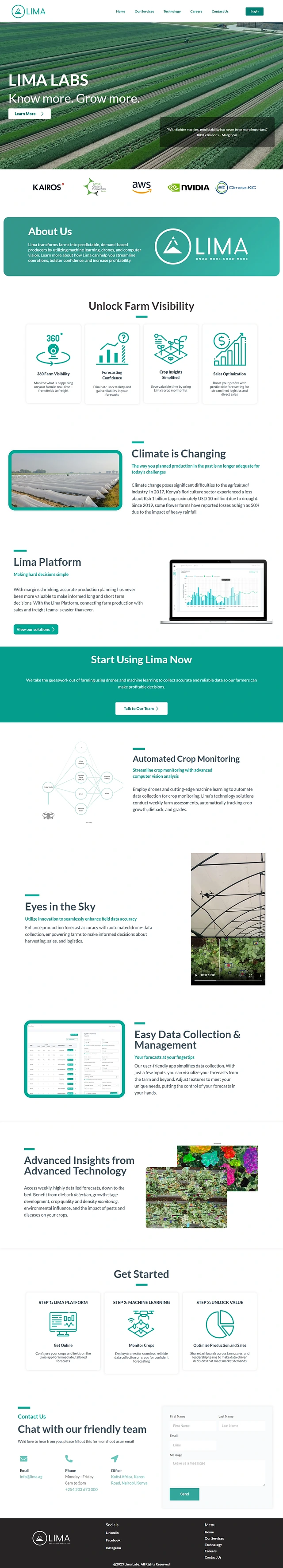 Challenge: Lima Labs, a company transforming farms into predictable, demand-based producers using machine learning, drones, and computer vision, needed a landing page that effectively communicated their innovative solutions. The challenge was to showcase their technology in a way that resonated with farmers looking to streamline operations and increase profitability.