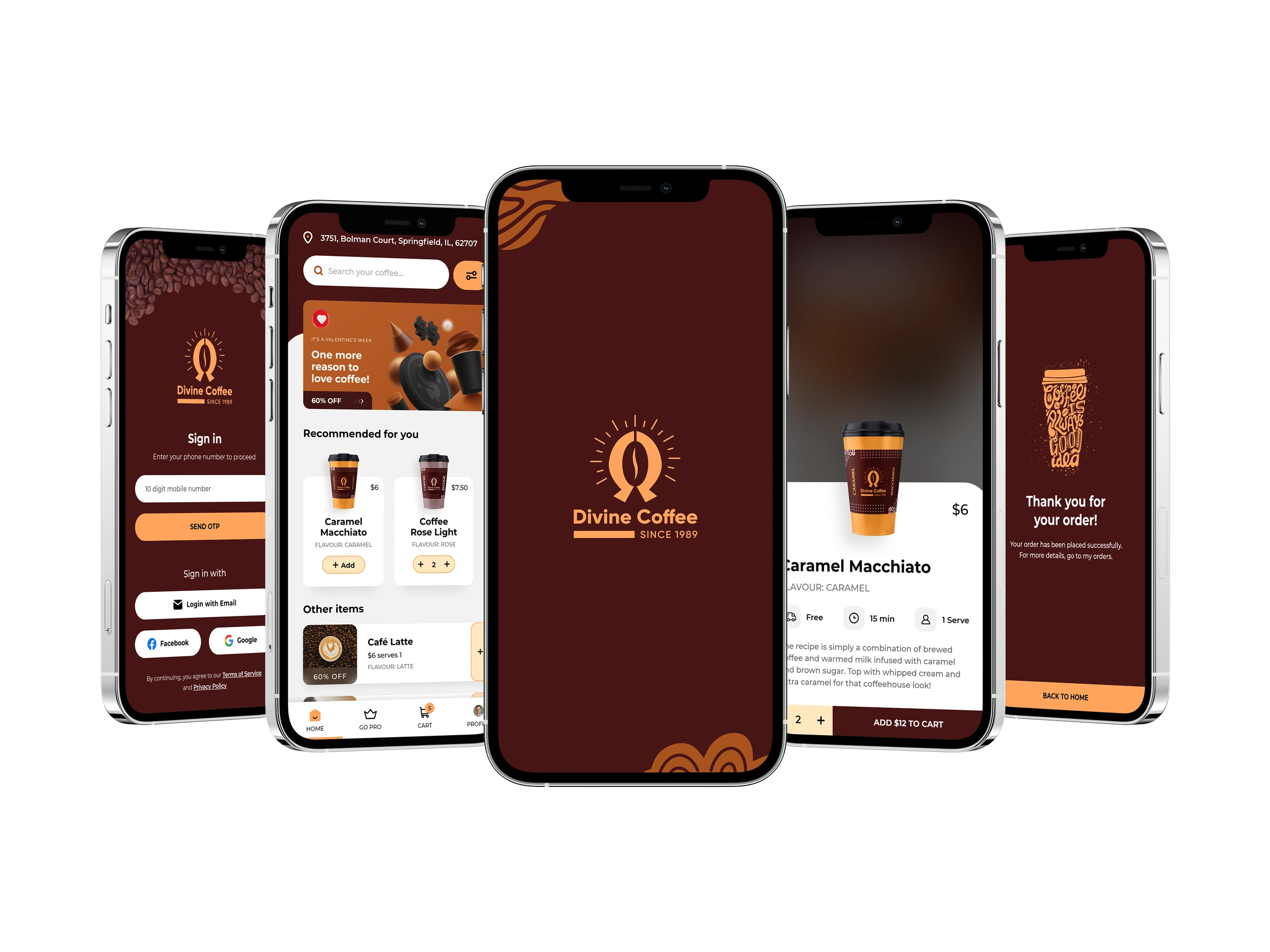 Meet DivineCoffee, the mobile app that brings your favorite brews straight to your doorstep — fresh, fast, and full of flavor!