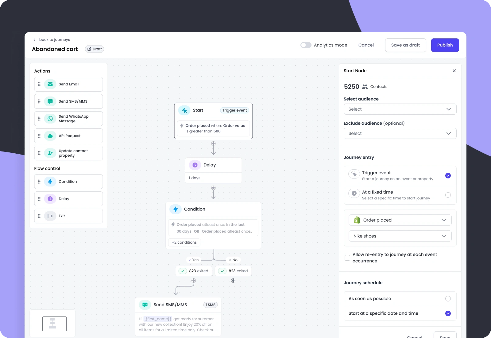 To move fast and offer a best-in-class editing experience, we integrated a third-party drag-and-drop email builder, customizing it to feel seamless within our product and aligned with marketers’ needs.