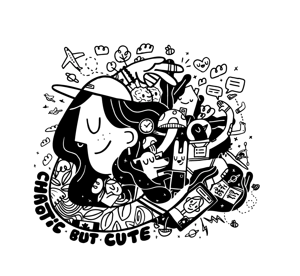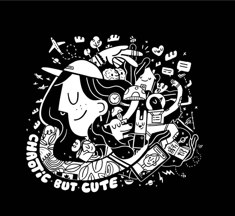 Having ADHD can be seen as a superpower for some and a daily struggle for others. Regardless, there's always a lot going on. Online creator, ADHD coach, and podcaster, Hayley Honeyman came to me to design a shirt for their brand that stood on its own but also was immediately identifiable to the neurodivergent and ADHD community.