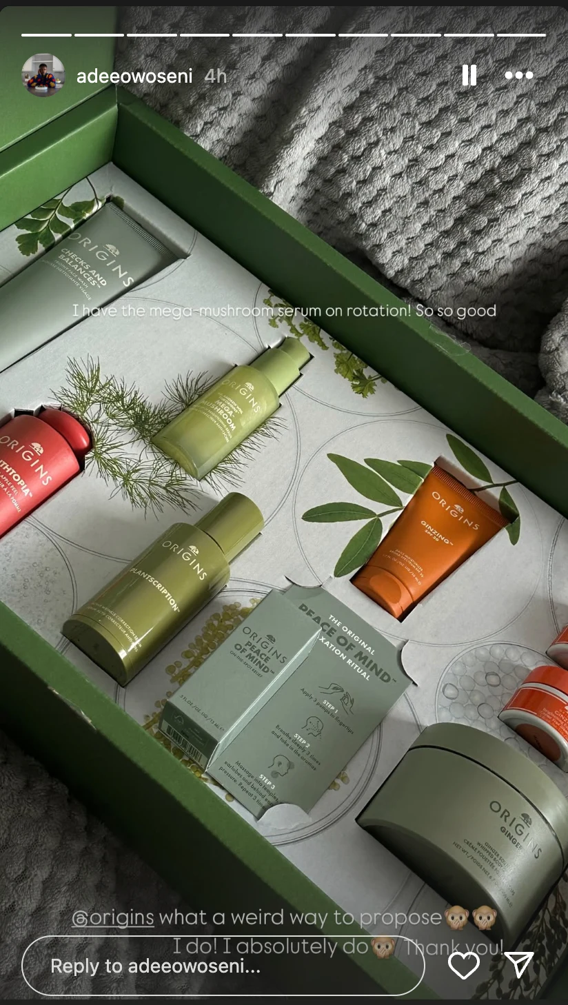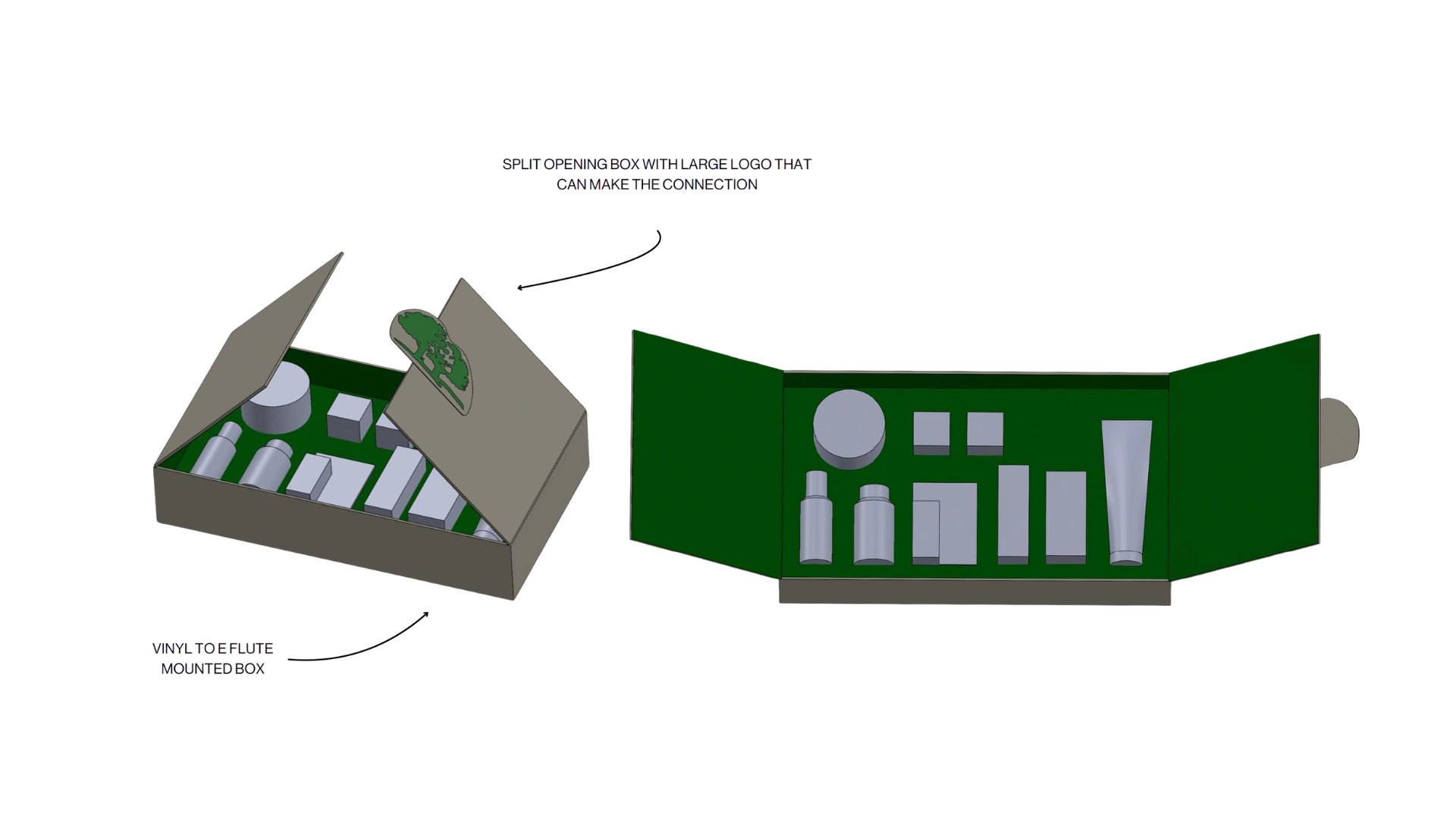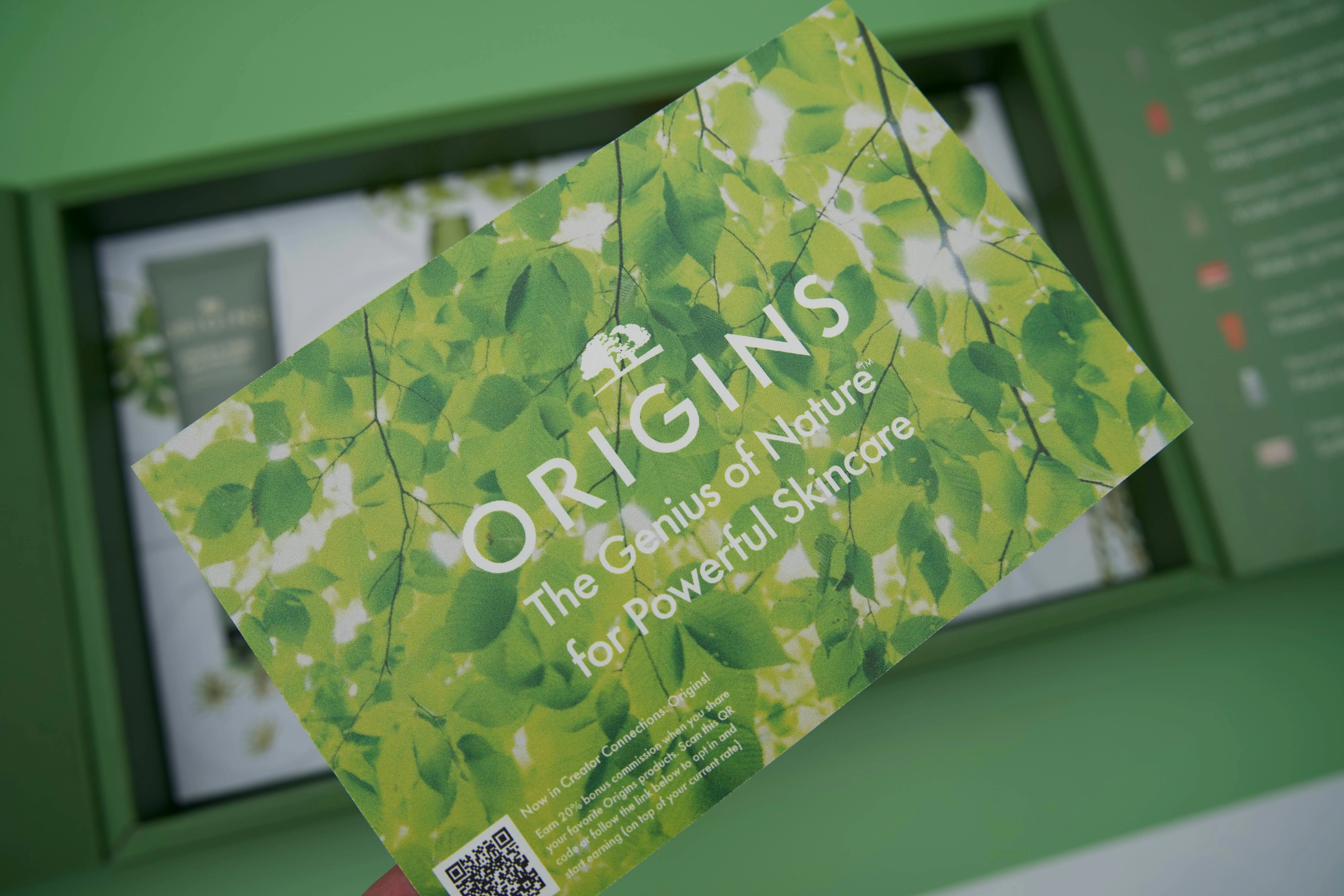 The packaging design centered on creating an immersive unboxing experience that physically embodied Origins' "nature meets science" brand story. The solution featured a split-opening box with fold-out panels—a strategic choice that maximized surface area for brand storytelling within the space constraints of the product array.The exterior maintained a natural, sustainable aesthetic with kraft tones and the Origins logo, immediately signaling the brand's commitment to earth-conscious values. Upon opening, recipients would discover a vibrant green interior that evoked Origins' botanical heritage, with products nestled securely in custom-fit padding.