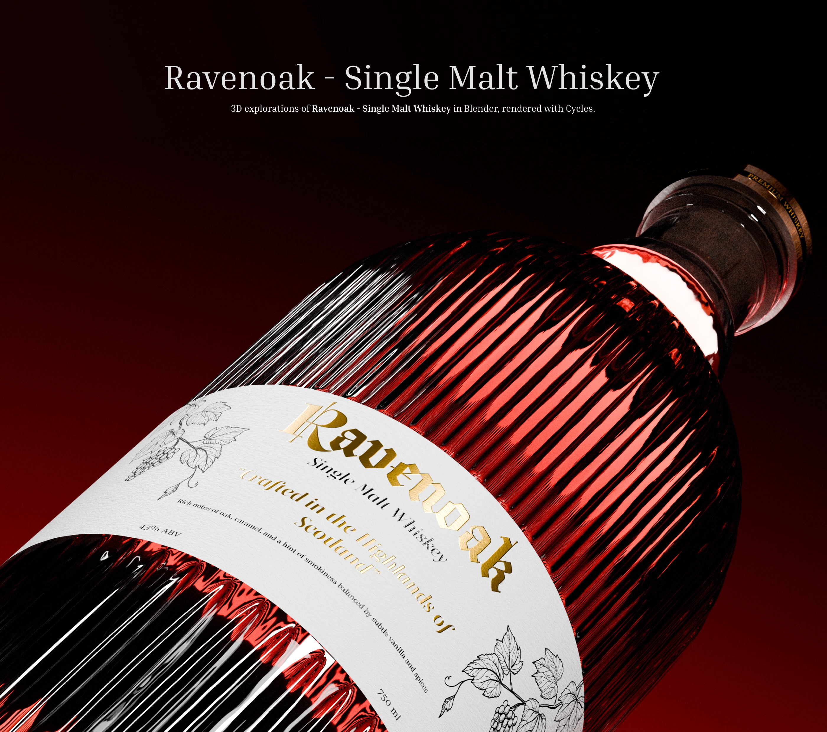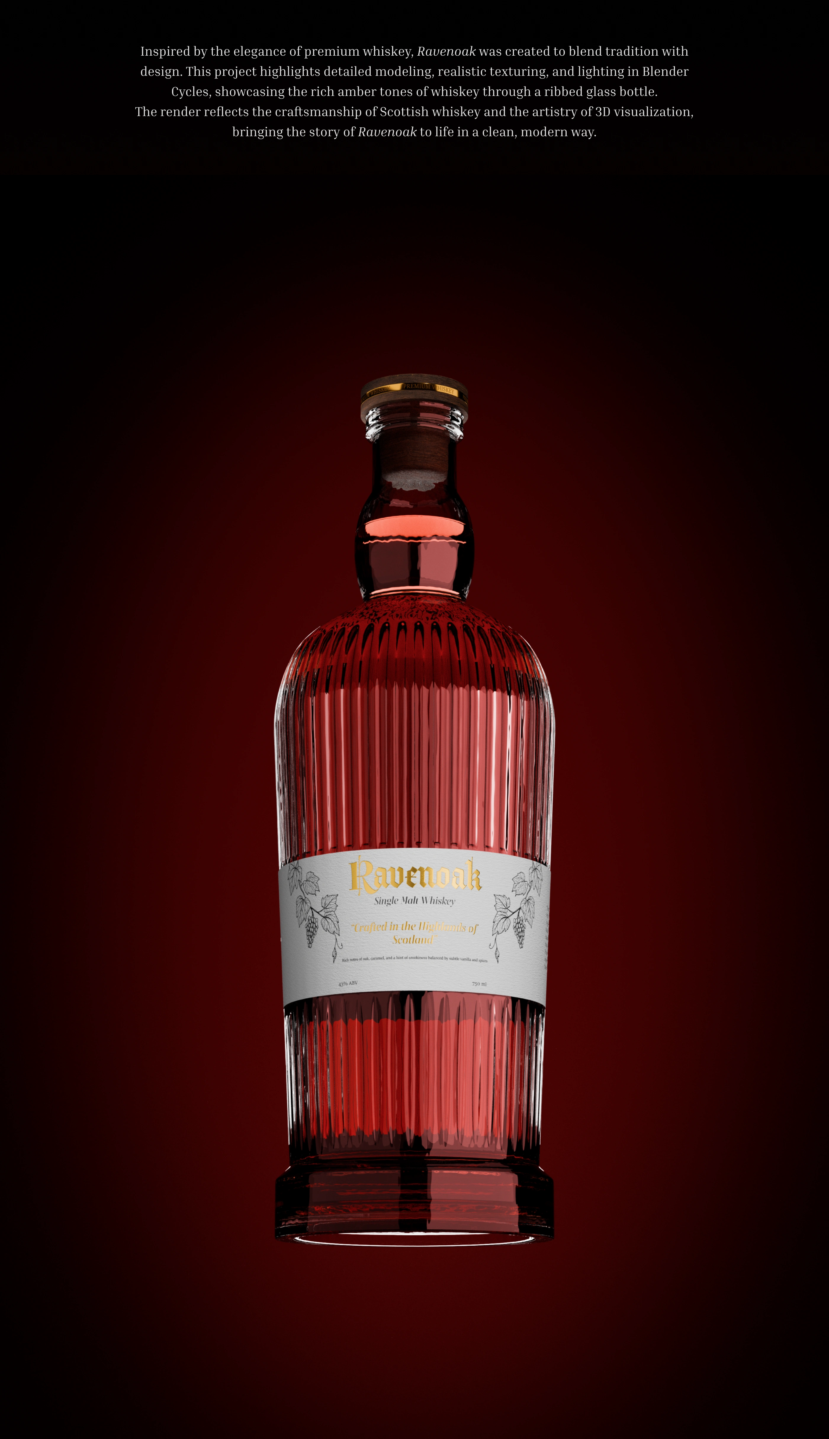Ravenoak Whiskey fuses timeless tradition with modern design and bold 3D artistry, capturing a truly refined spirit in every meticulously crafted detail.