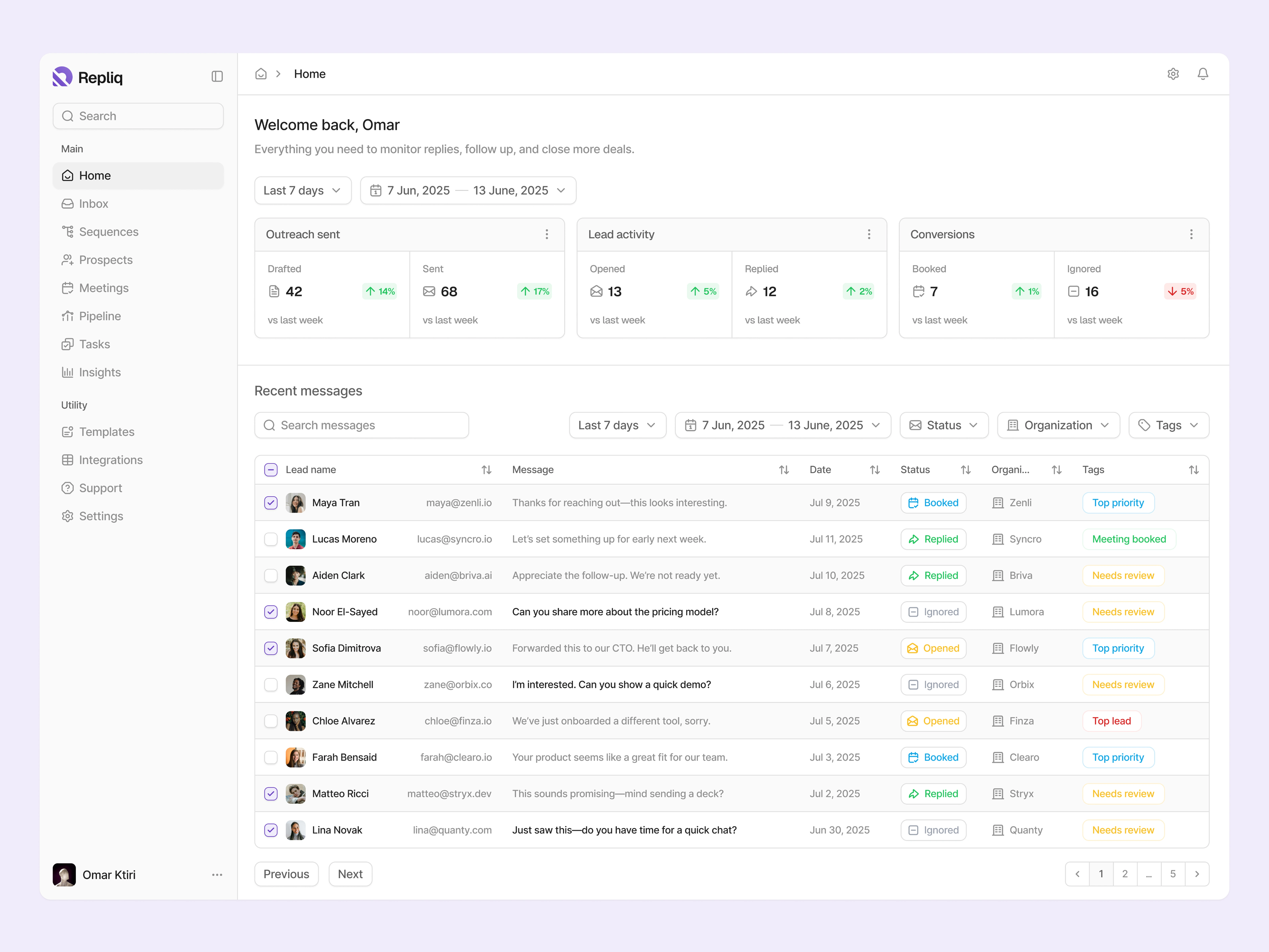 Smart CRM Dashboard Interface