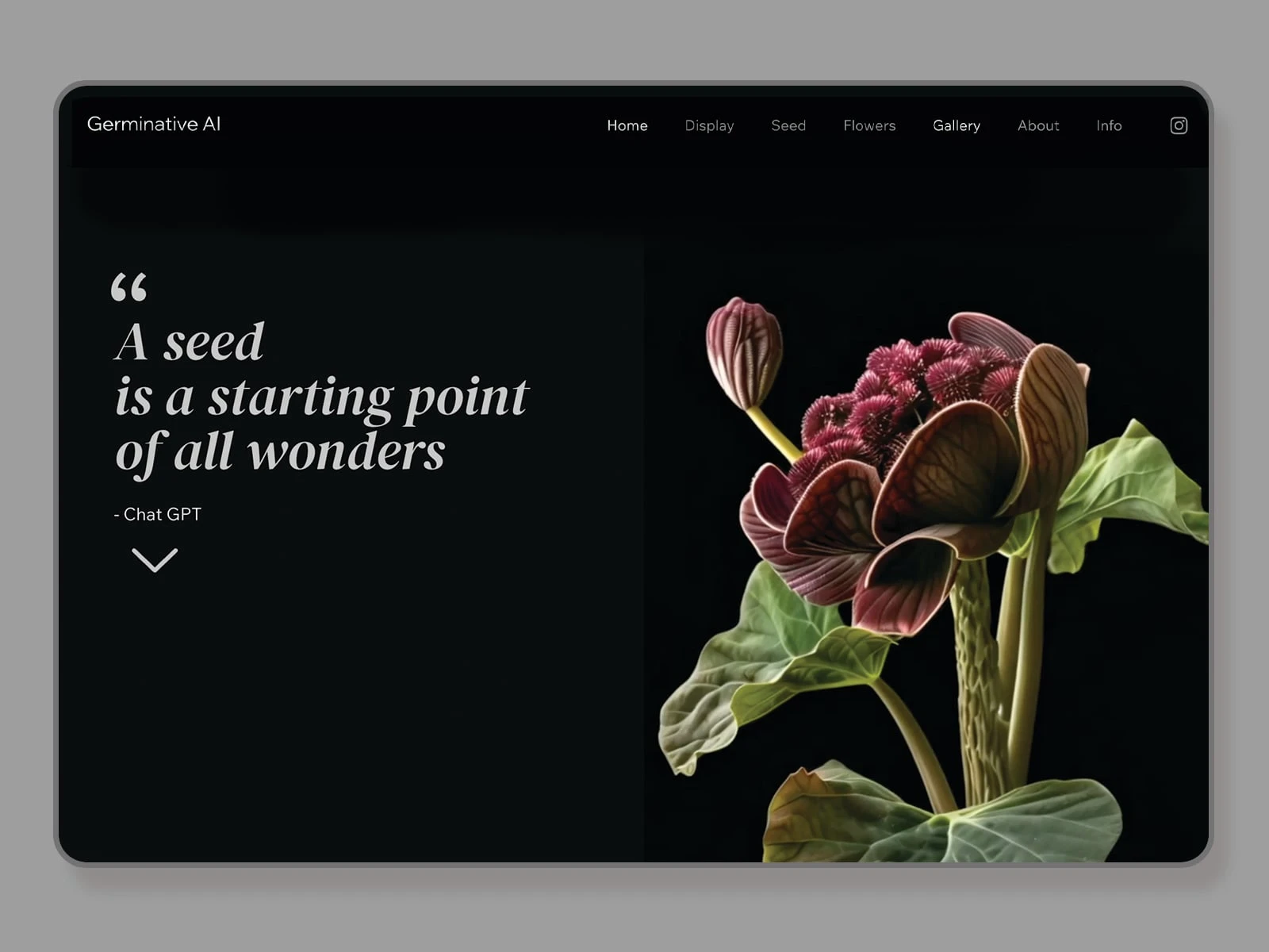 Germinative AI is a website built for a unique immersive artwork, that is made with AI.