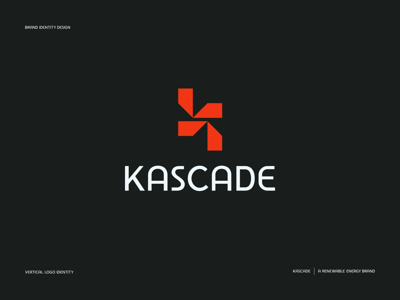 Having created the KASCADE logomark, refine the design where the initial "K" resembles a fan or windmill, symbolizing renewable power generation. Ensure the logomark’s sharp, clean edges continue to convey a straightforward, future-oriented approach. Enhance its integration with a vibrant gradient background, reflecting nature and energy, while maintaining a modern and impactful aesthetic.