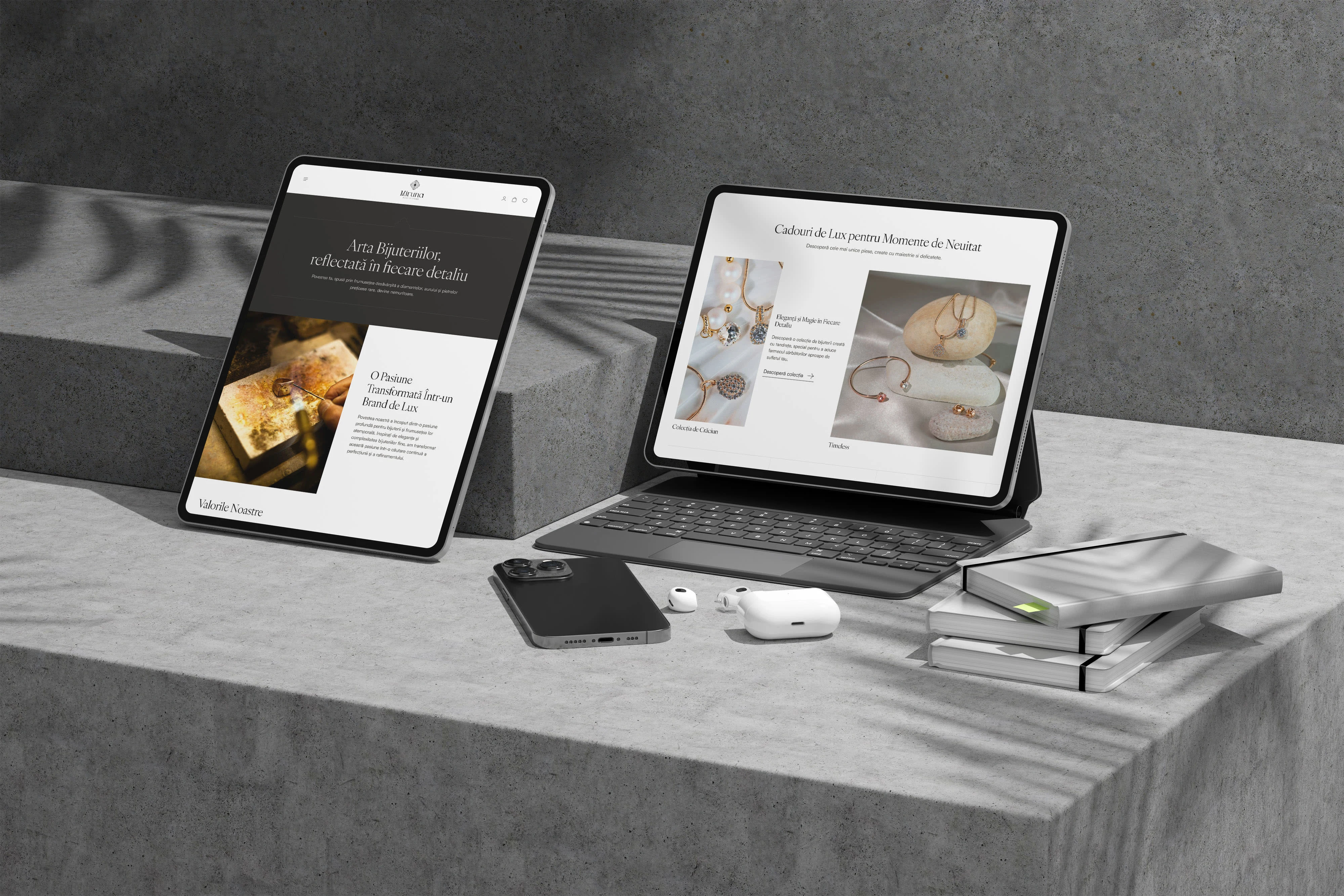 Typographically, the design pairs IvYOra Display for headings with Satoshi for body text to establish a clear hierarchy and a refined brand voice. IvYOra Display, with its elegant and distinctive letterforms, is chosen to convey exclusivity and artistry, making each product title or section heading feel special and unique. In contrast, Satoshi is a modern, geometric sans-serif that ensures clarity and readability for all body text, from product descriptions to navigation links. This dual-font approach marries artistic flair with practical usability, ensuring that the user experience is both visually pleasing and effortlessly functional.
