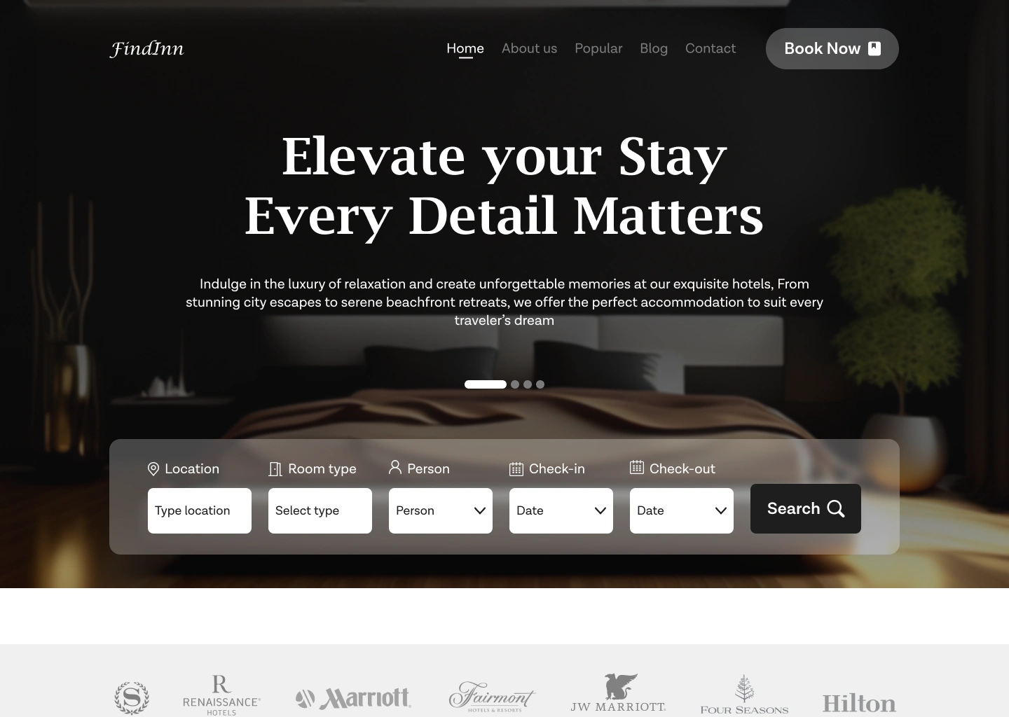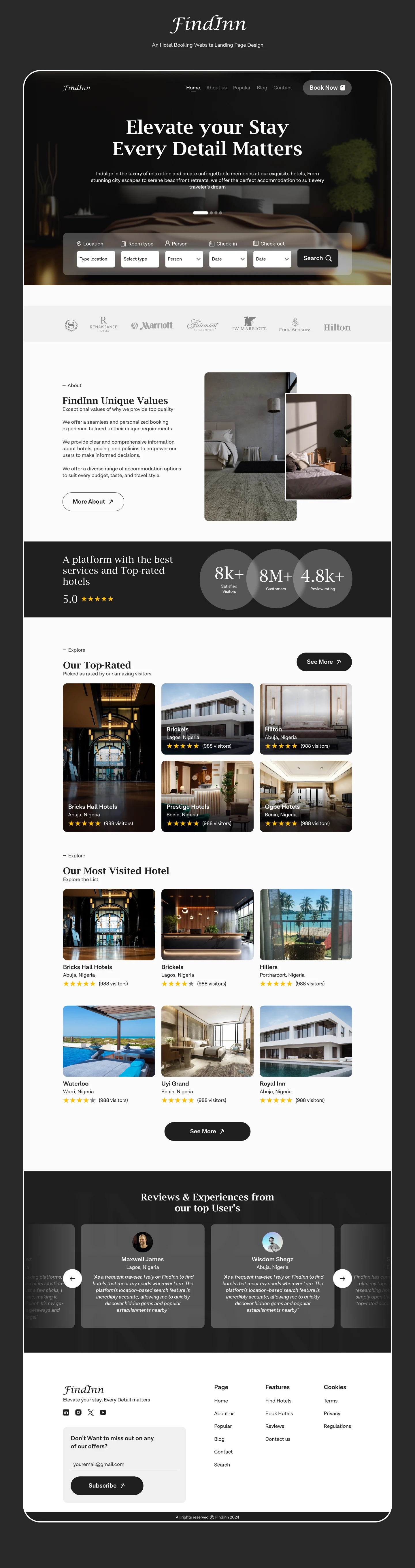 Figma-designed UI/UX for a hotel booking platform featuring location-based search, real-time availability and seamless reservation system