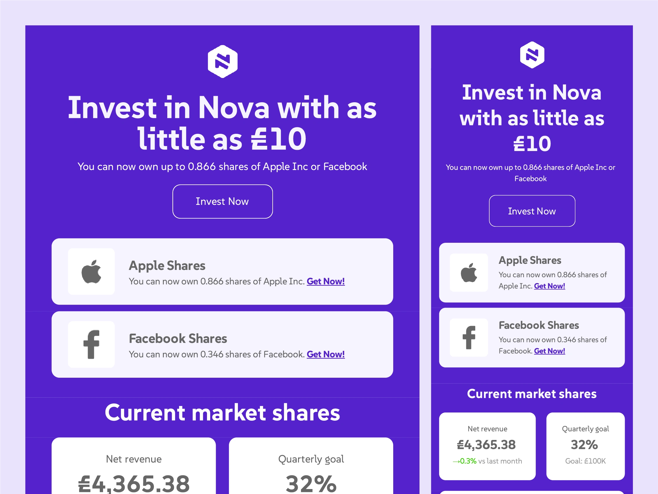 This investment email design is crafted with a modern look, using a clean layout and bold typography that reflects professionalism and clarity. The email opens with a dynamic header, followed by a concise overview of market shares and statistics that are displayed in visually engaging graphs and charts, making data easy to digest. Each section is strategically broken down for quick scanning, leading the reader smoothly to the CTA.