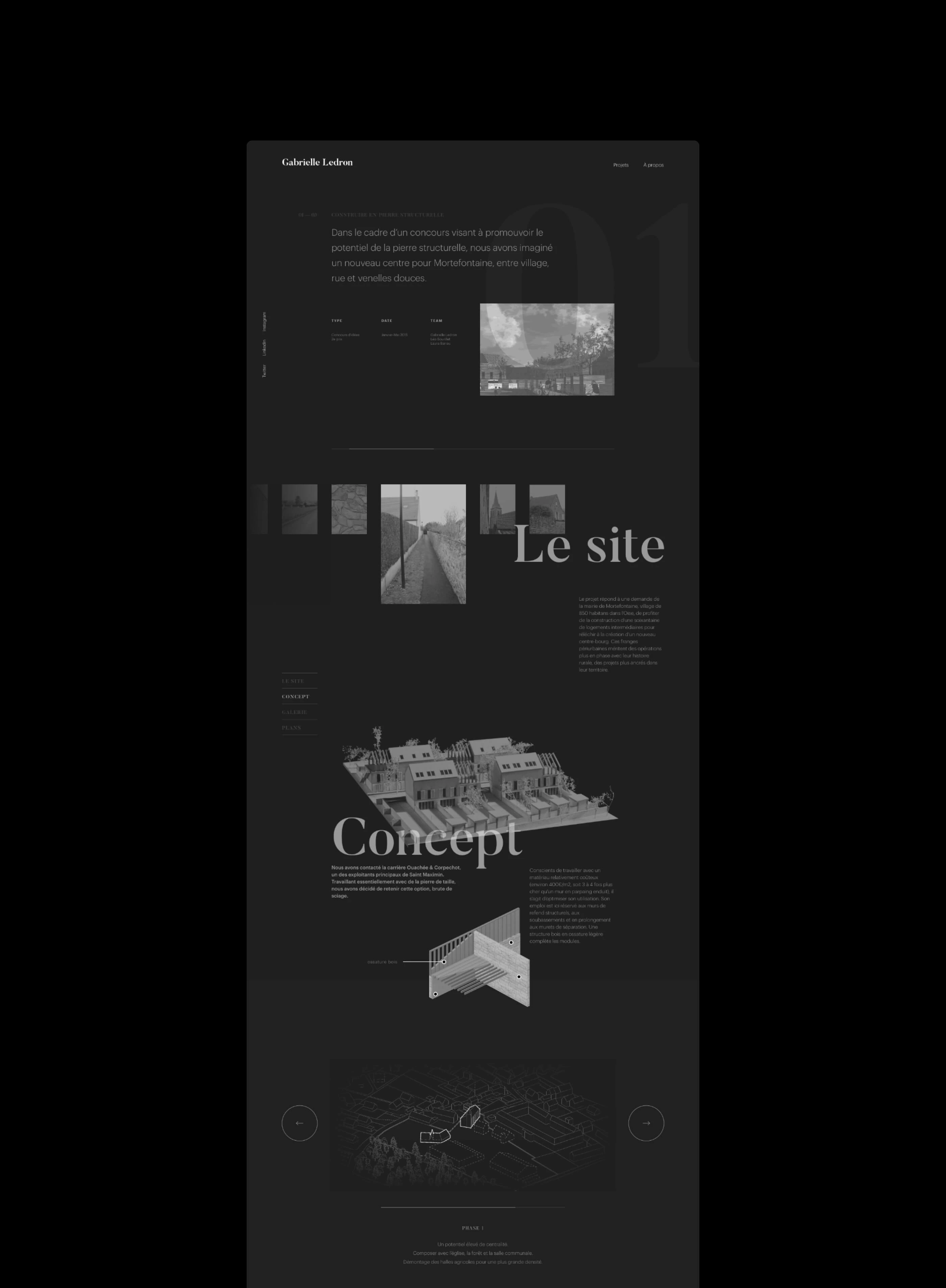 Through motion, layout and animation, i explored layering principles for the portfolio of Gabrielle, a young architect.