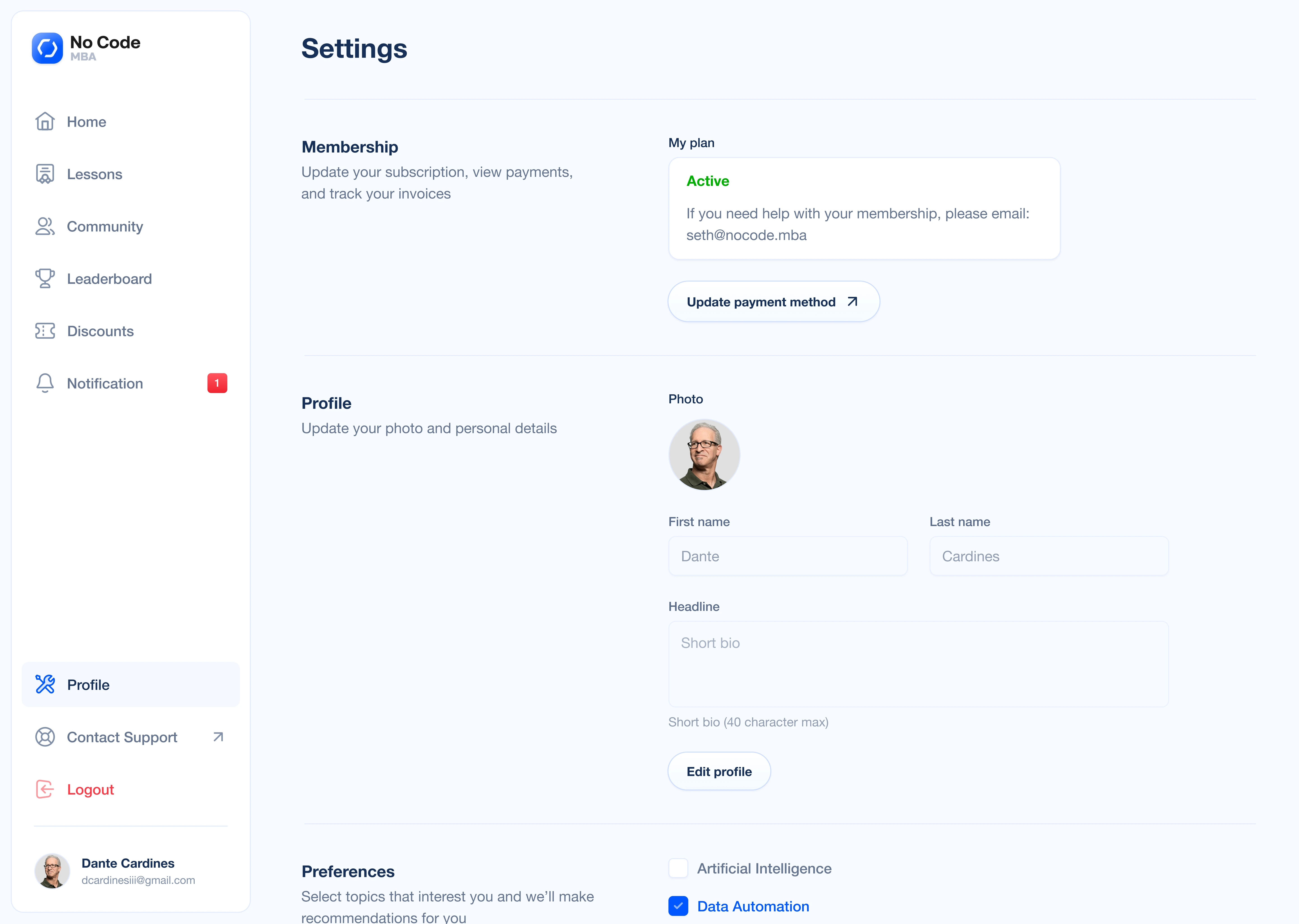 The platform is still actively used today and drove a 32% lift in signups and subscriptions, helping NoCode MBA grow while staying outcome driven.