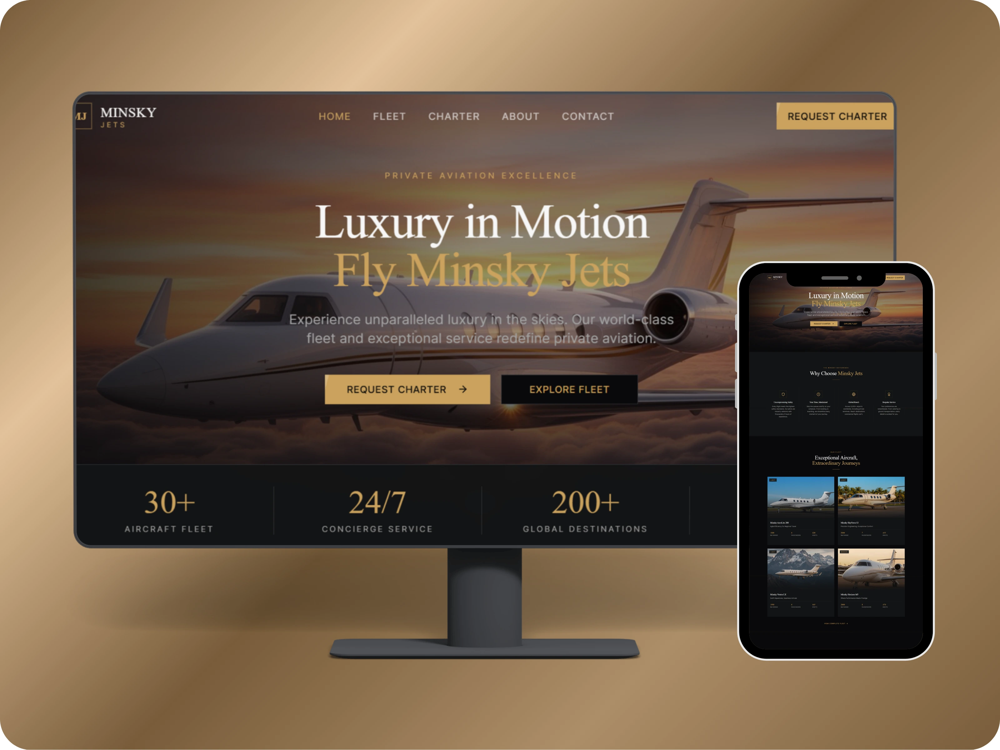 A high-end aviation website design that feels controlled, reassuring, and luxurious — guiding high-intent visitors from exploration to enquiry with modern, confident aesthetics.