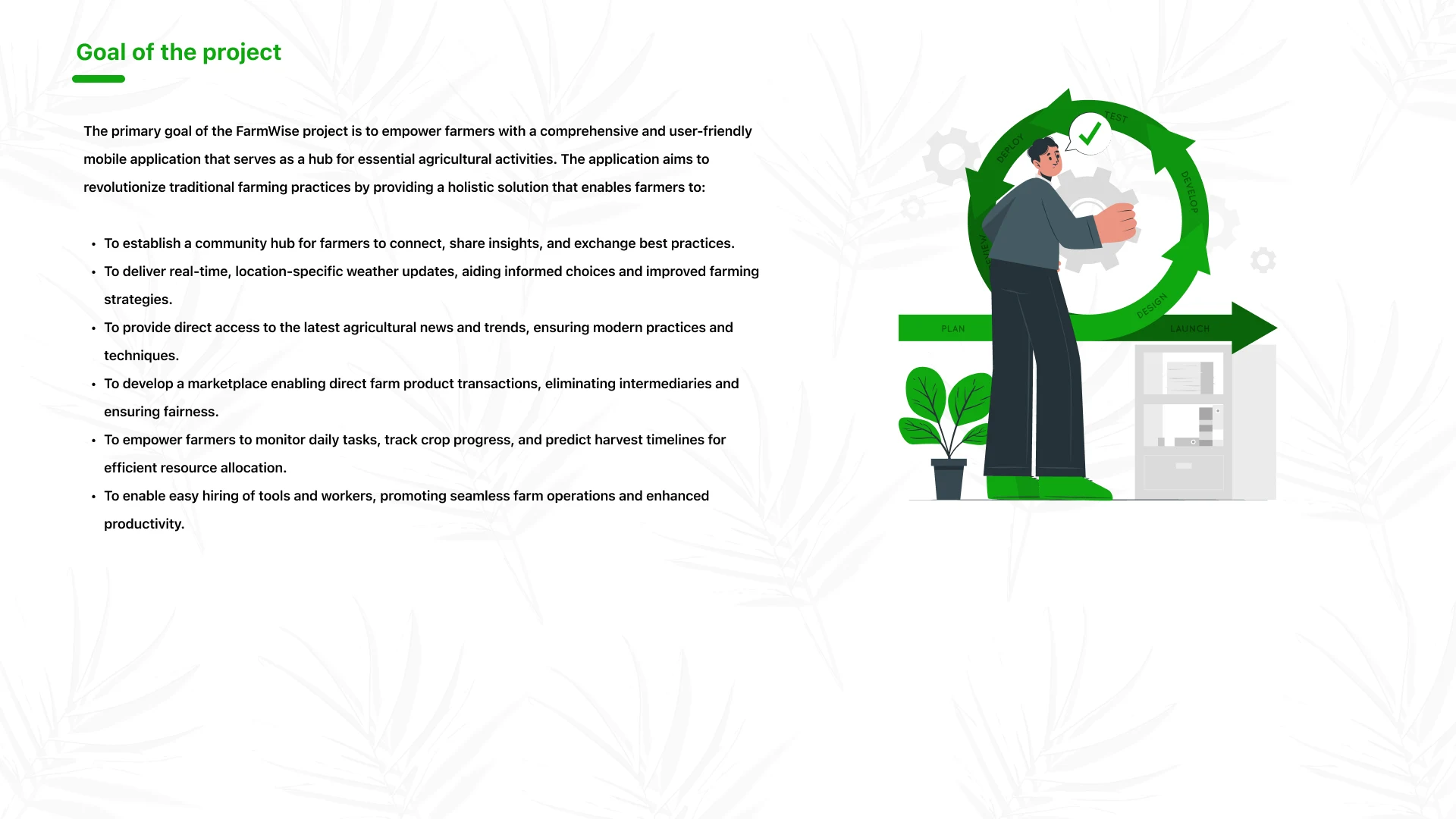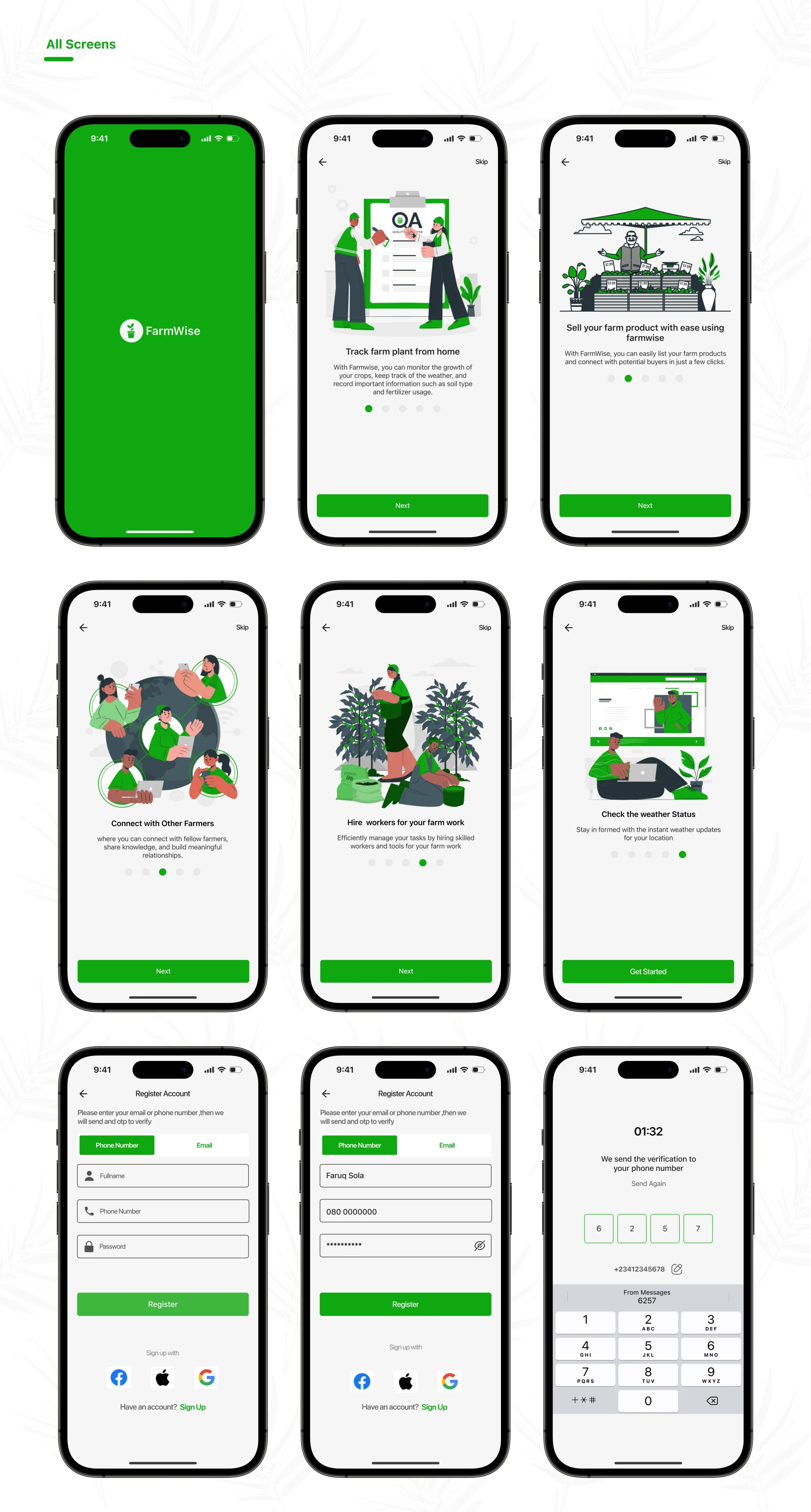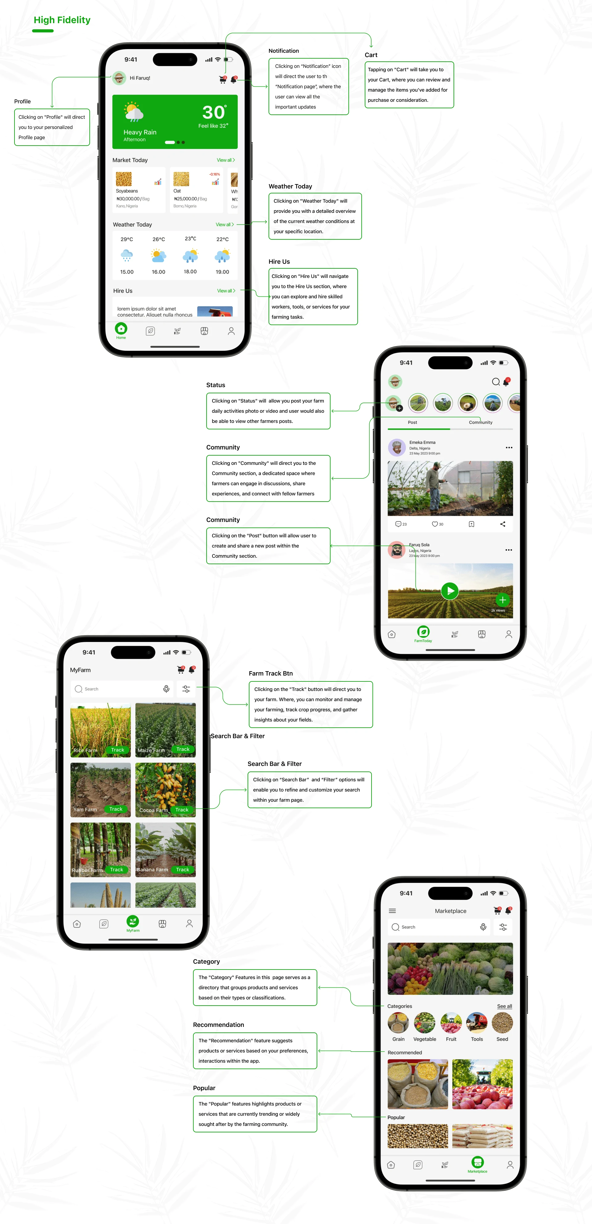 I designed a user-friendly mobile app for FarmWise, enabling farmers to manage crops, rent tools, and connect with others for updates and advice.