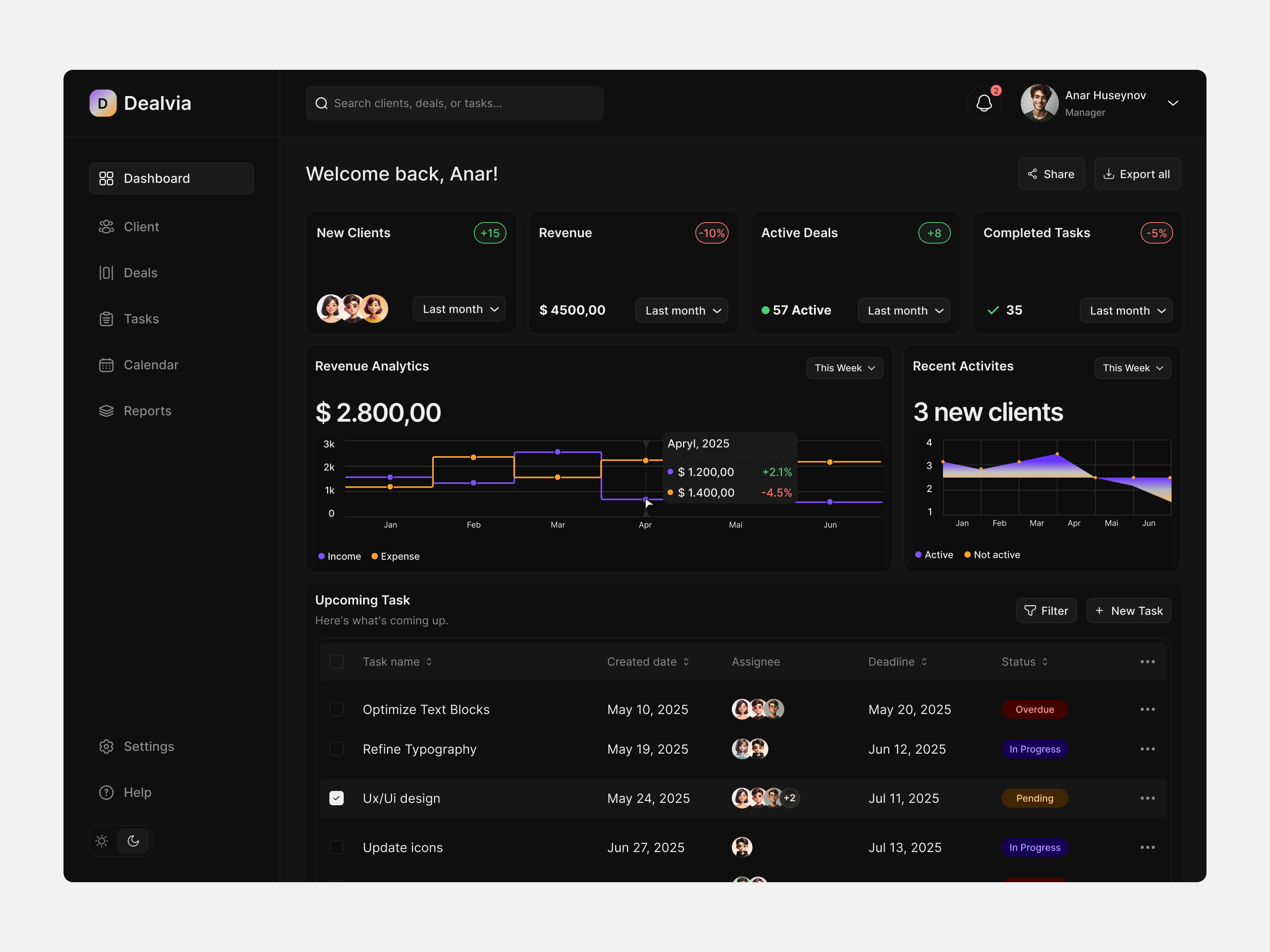 Designed a modern CRM dashboard interface for B2B companies using Figma.