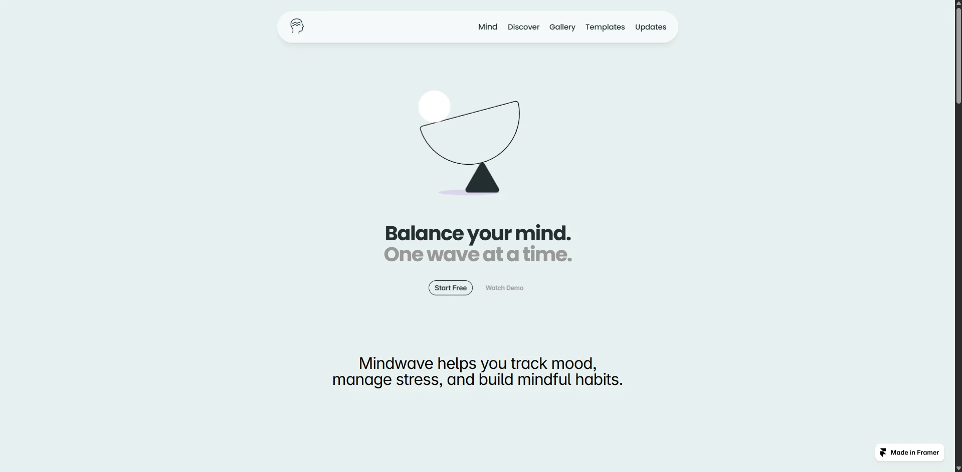 Mindwave is a digital wellness brand designed to help users track and balance their emotions through daily reflections. The project aimed to create a landing page that feels calm, intelligent, and trustworthy — communicating emotional wellness through clean design and smooth user flow.