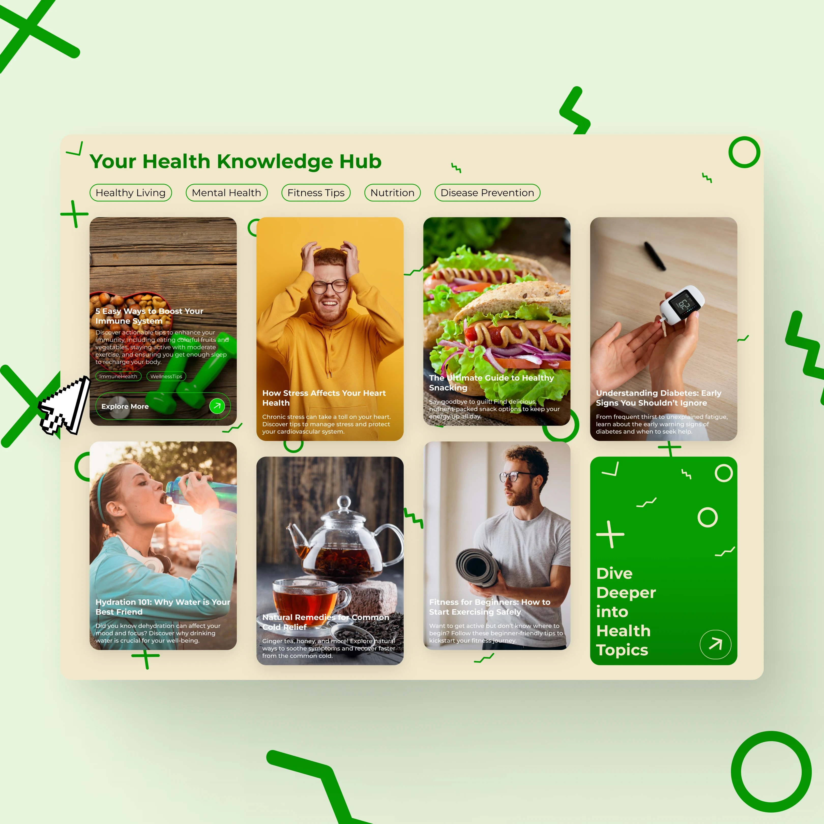 Articles Section: Stay informed with curated health articles, designed to provide actionable tips and insights for better well-being.