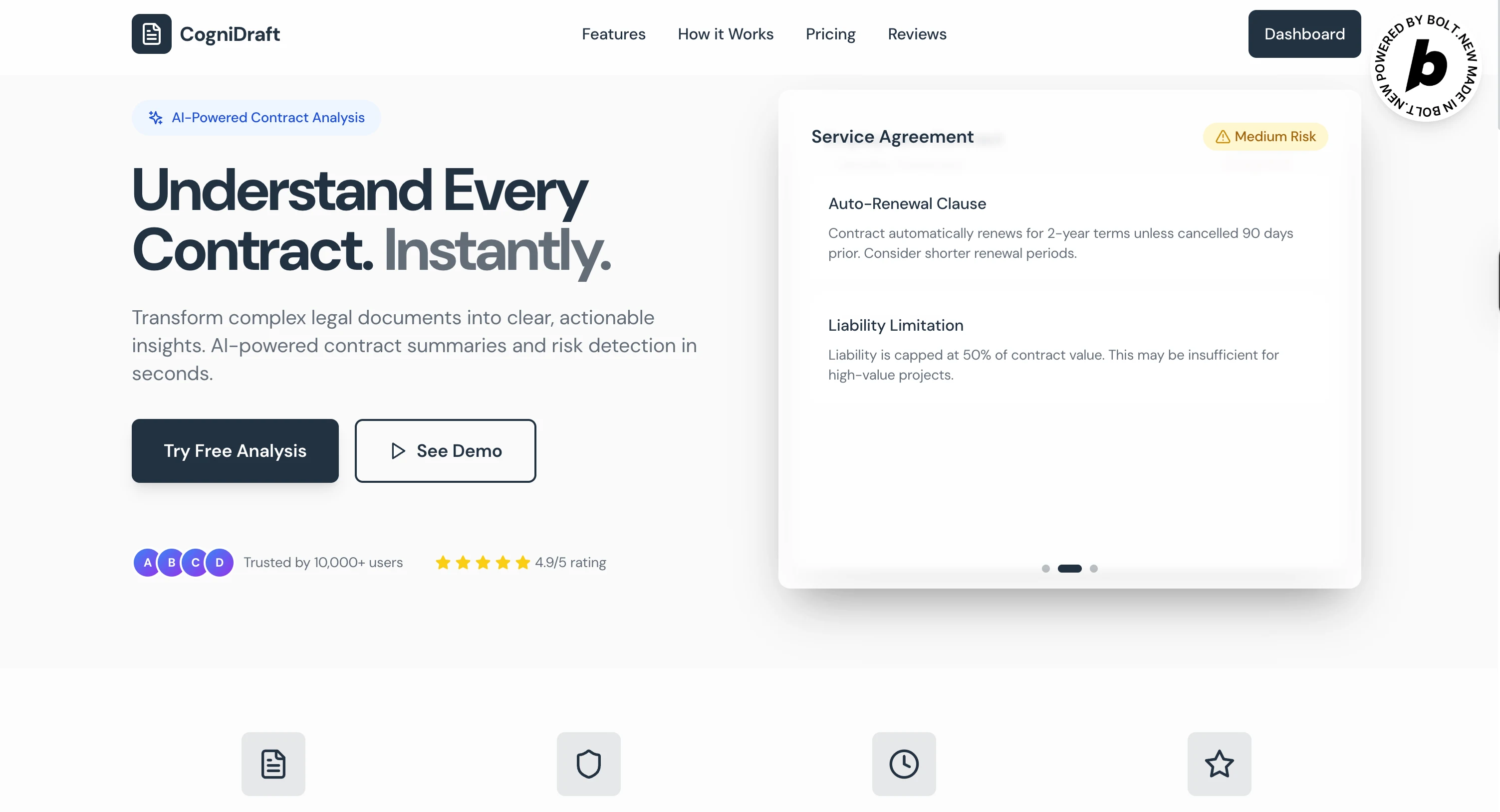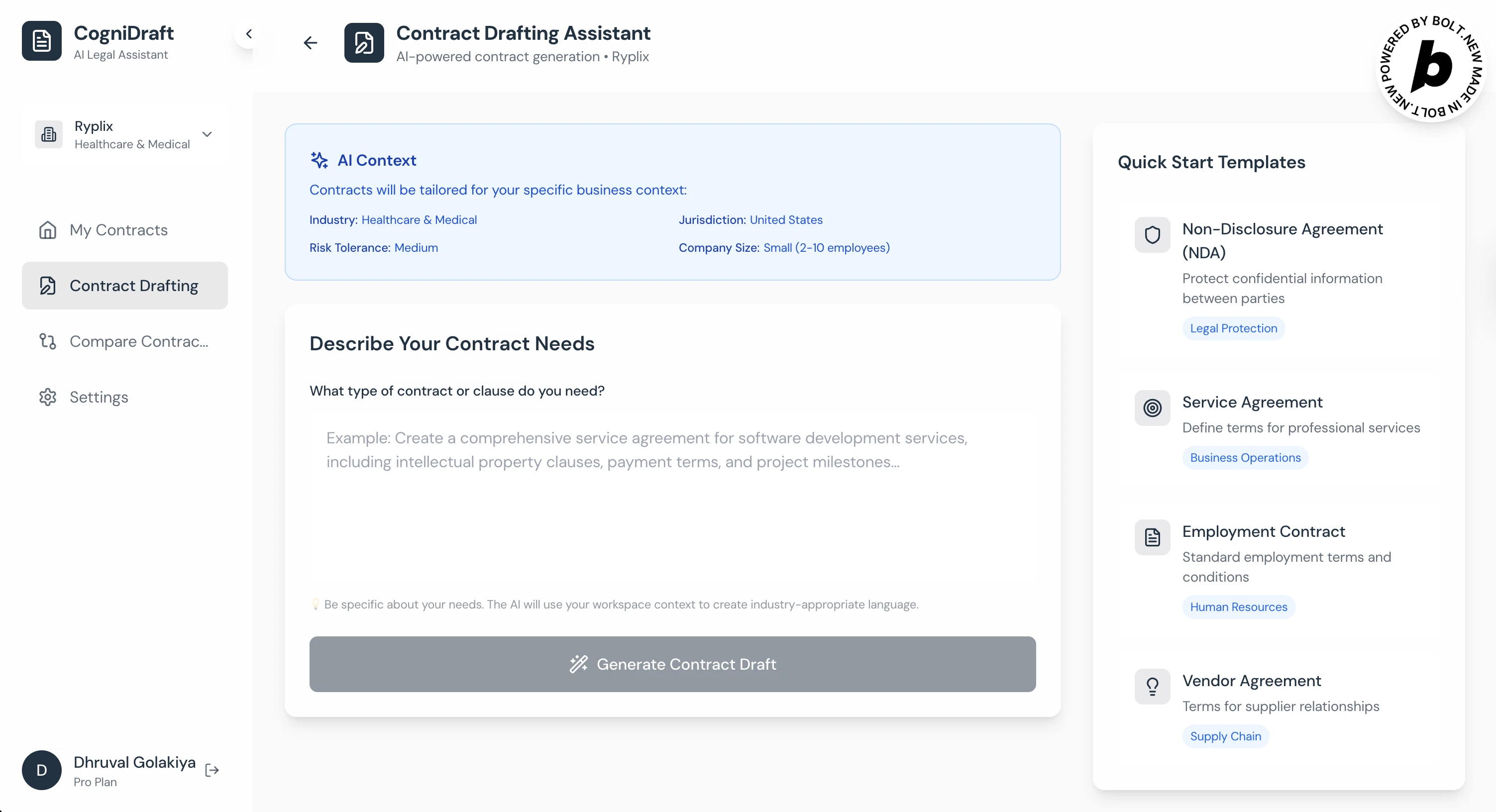 Developed a user-friendly AI-powered contract analysis tool for CogniDraft.