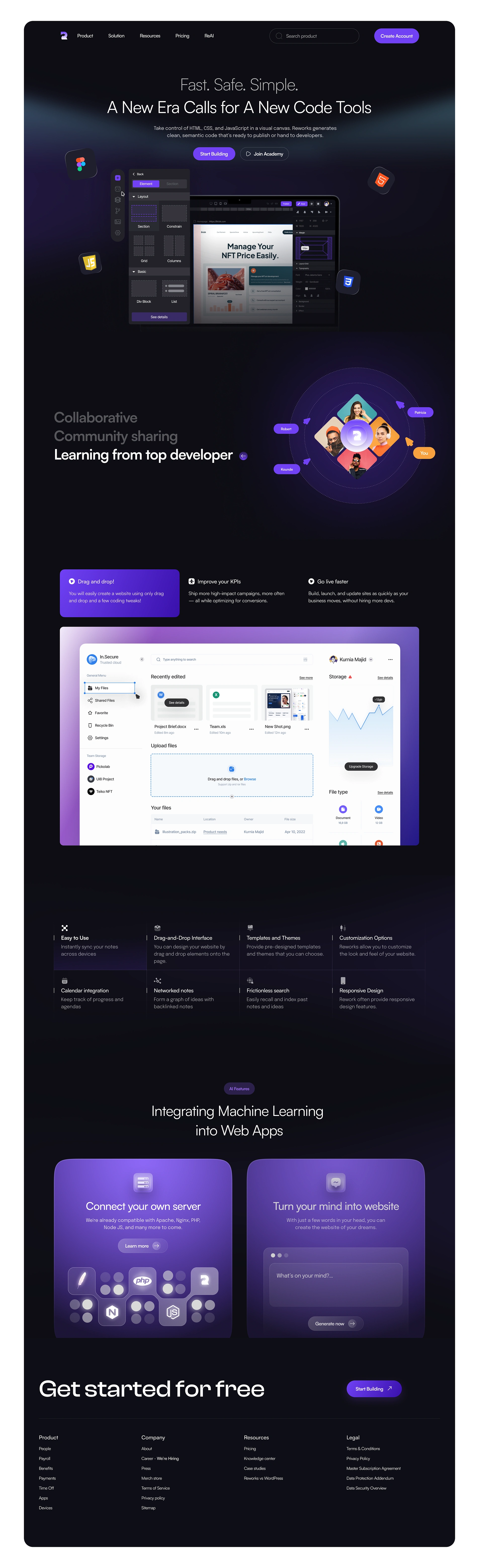 Our design philosophy for Reworks centers around simplicity and effectiveness. We've crafted a sleek and modern interface that prioritizes ease of use, allowing users to effortlessly create stunning websites without any coding knowledge. π¨β¨