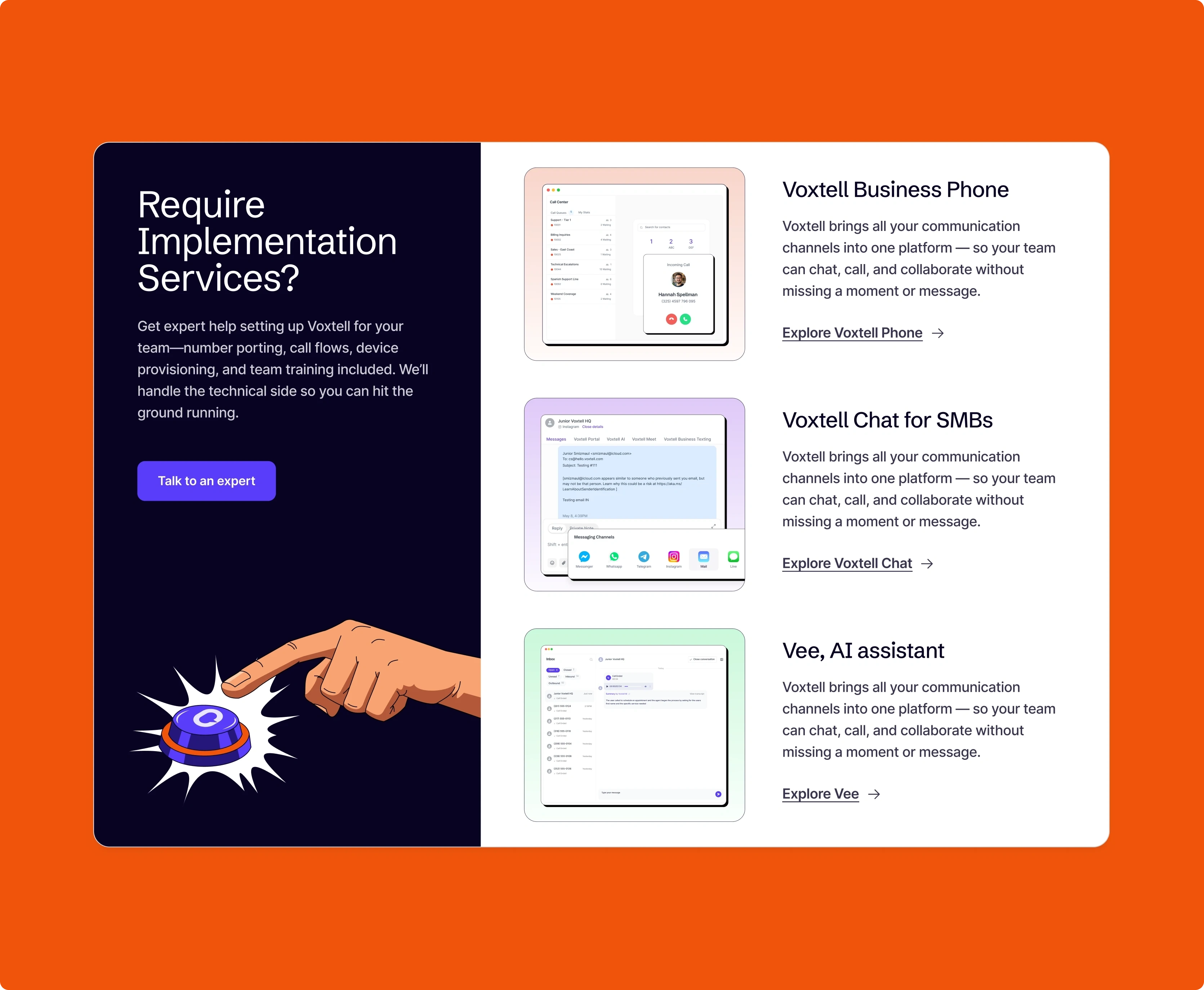 Voxtell is a modern communications platform that ensures businesses never miss a call or a customer. Their suite includes VoIP phone systems, unified chat, video conferencing, contact center tools, and most importantly Voxtell AI — a 24/7 virtual assistant that answers calls, handles inquiries, and books appointments seamlessly.