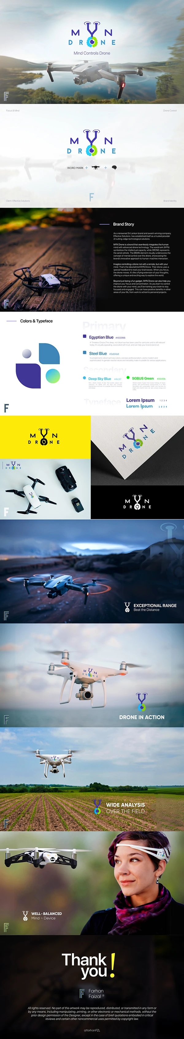 A futuristic logo for MYNDrone, capturing the essence of EEG-controlled flight. It's a modern brand identity for the exciting future of human-tech control.