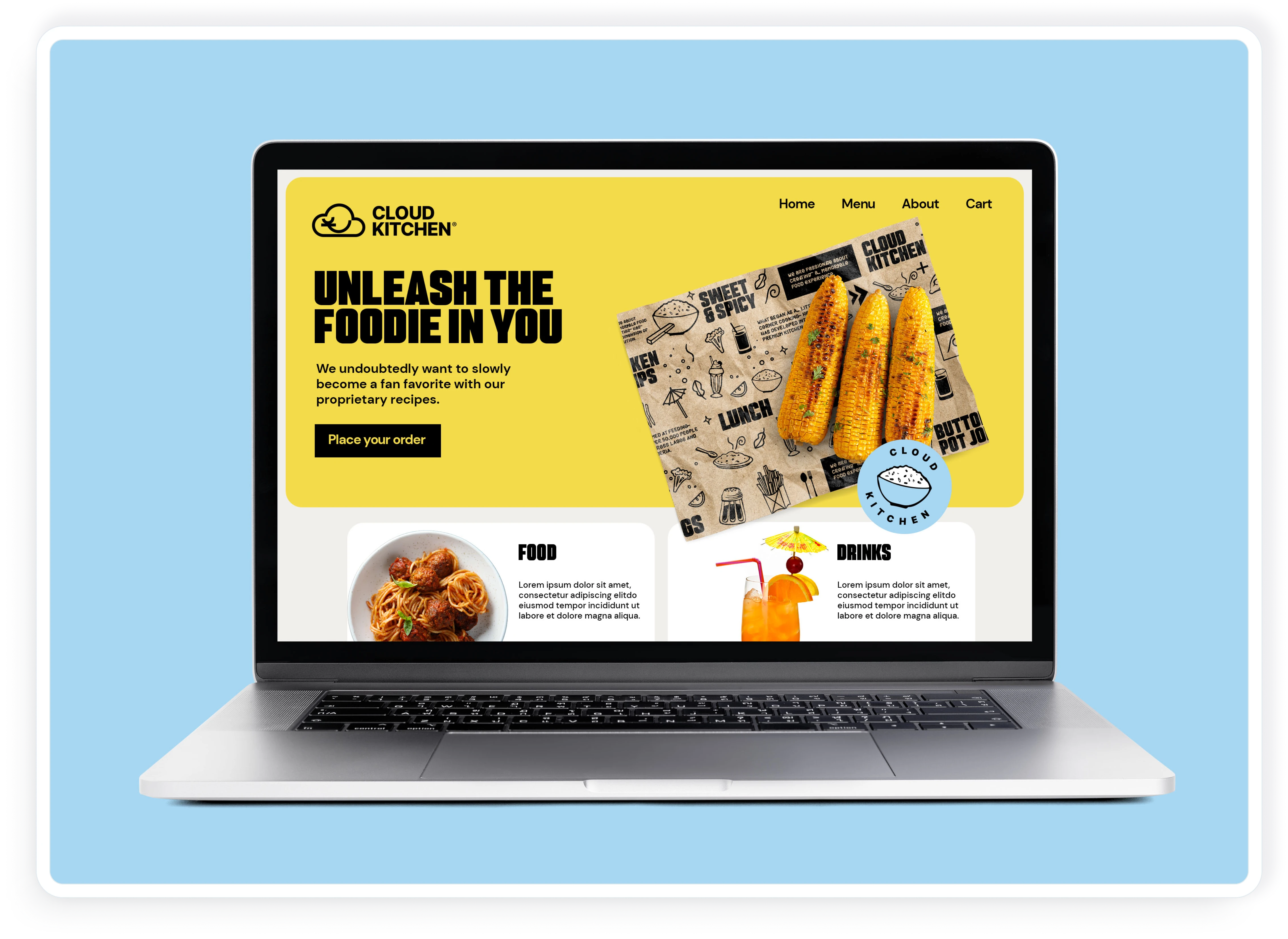 The final design brought Cloud Kitchen’s new brand identity to life online: