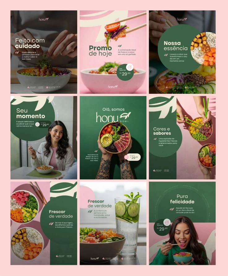 The objective was to create dynamic, engaging, and visually appealing carousels that not only capture attention but also effectively communicate key messages and offerings. Each carousel had to reflect the unique identity and values of the respective business, whether it was a food delivery service, a wellness brand, or an e-commerce platform.