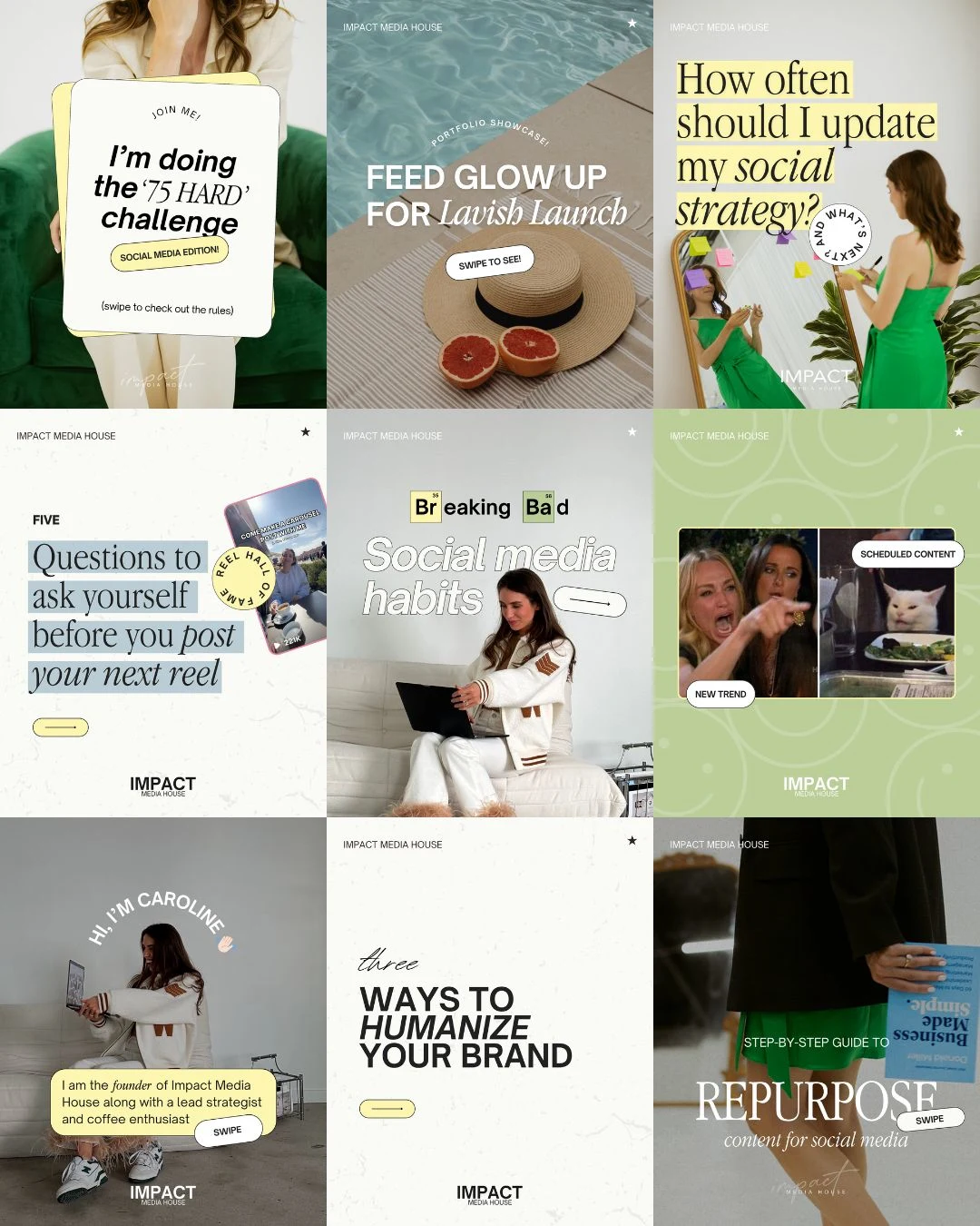 Engaging Visuals: Used impactful typography, creative layouts, and bold color schemes to increase audience interaction.
