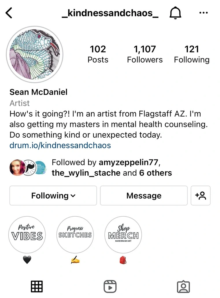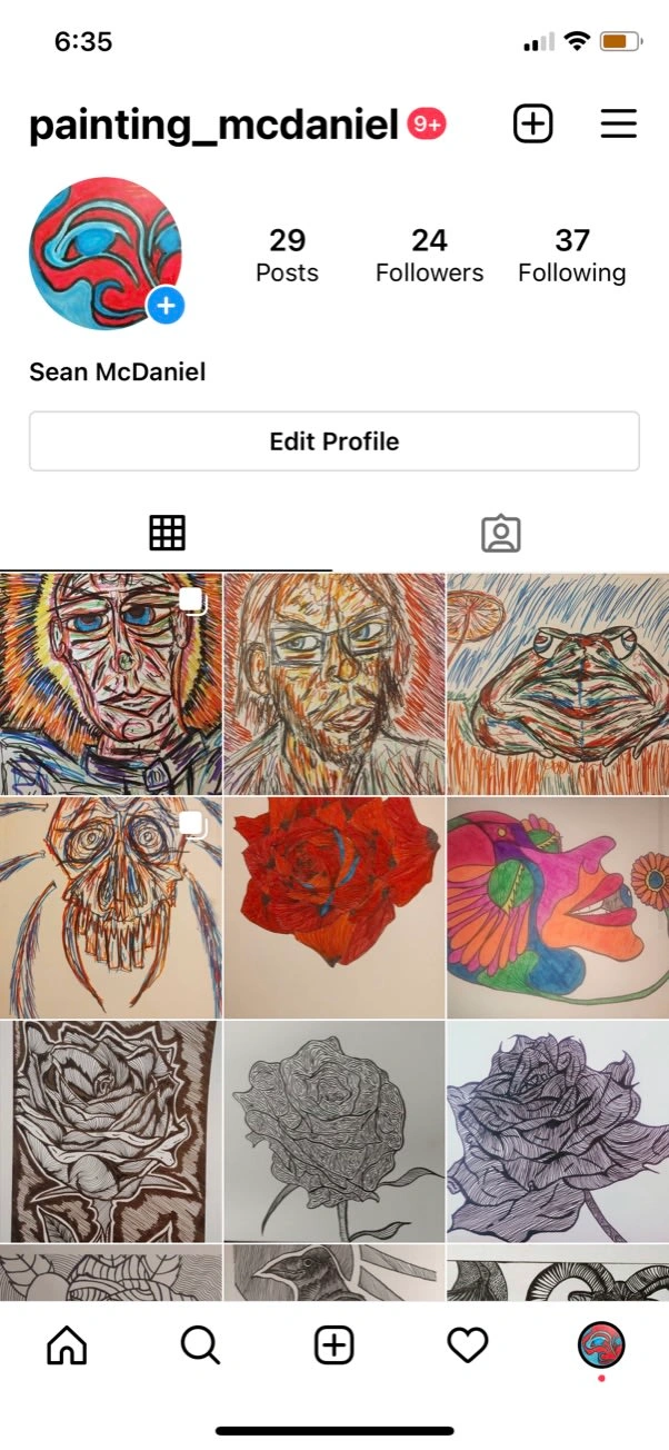 I helped a talented artist re-do his profile completely. He started at 24 followers and is now up 1,107 in 7 months. We fixed the lighting, added consistent backgrounds with an alternating color pattern.