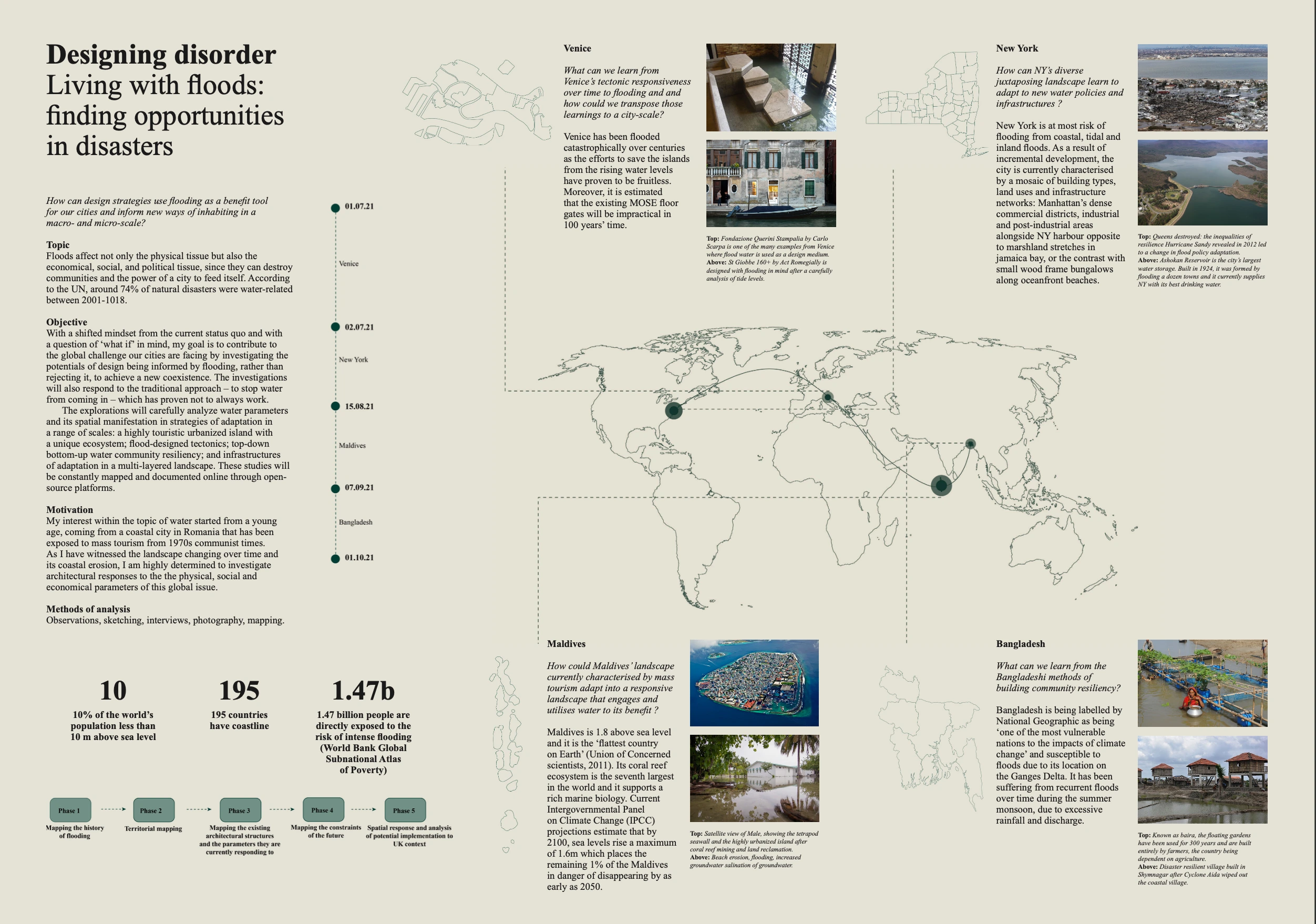 Poster design and research. Climate adaptation research for combatting flooding across 4 different case studies.