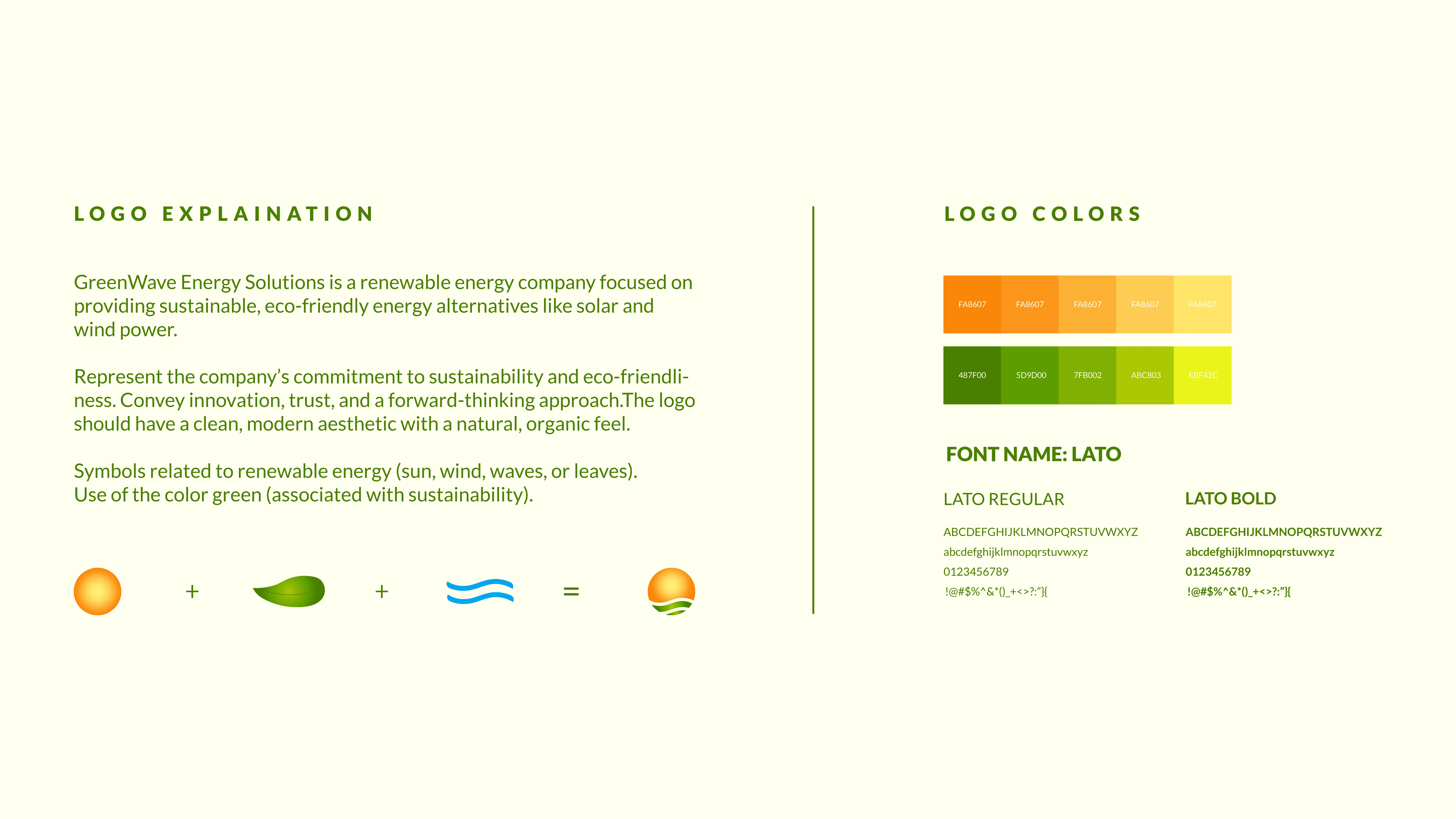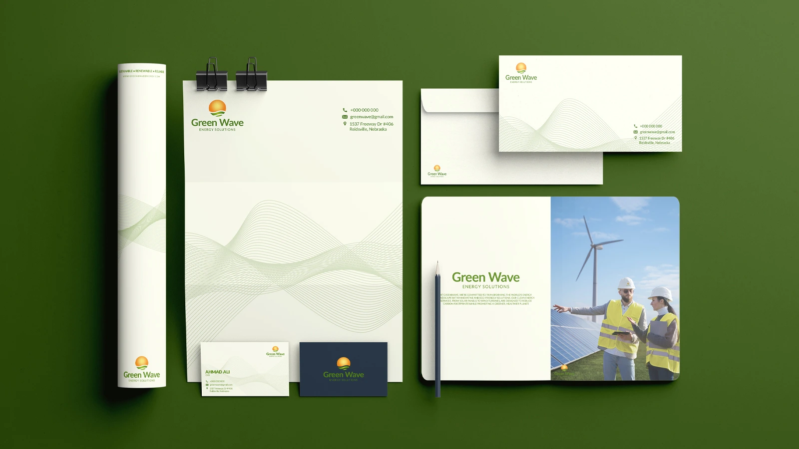 The final design effectively captures GreenWave Energy Solutions’ vision of a cleaner, more sustainable future while maintaining a modern and approachable look. The logo is scalable and adaptable, perfect for use in various formats such as digital marketing, packaging, and branded merchandise.