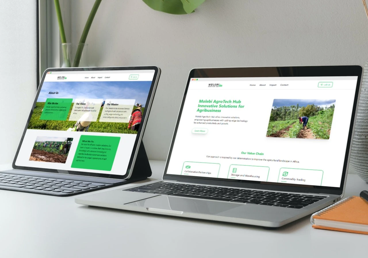 Create a dynamic and modern website for Molebi AgroTech Hub using React.js and Tailwind CSS. The website aims to showcase their agricultural technology services