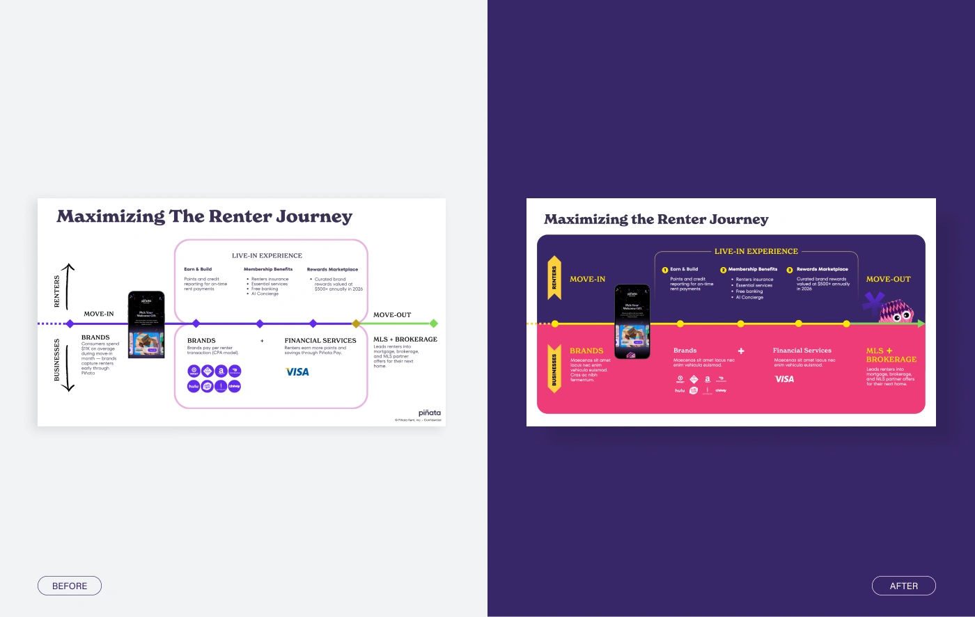 Piñata needed an engaging, investor grade pitch deck for its Series B raise. The existing presentation was visually inconsistent and hard to follow, lacking the clarity and professional polish required to stand out with investors.