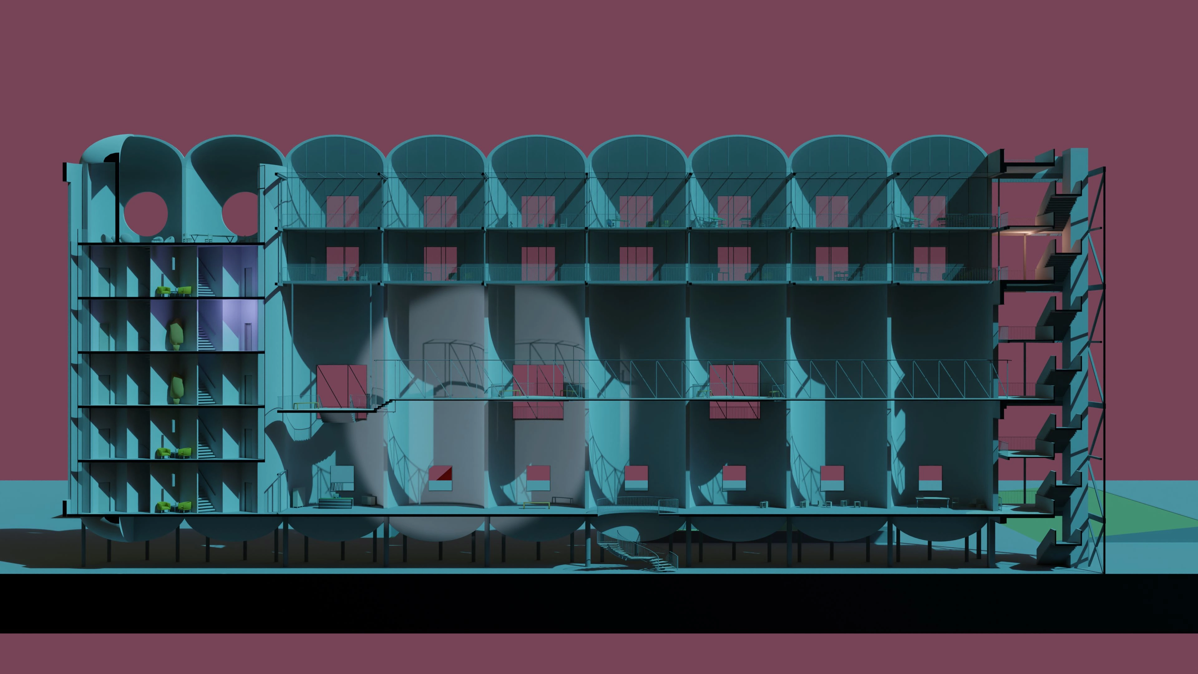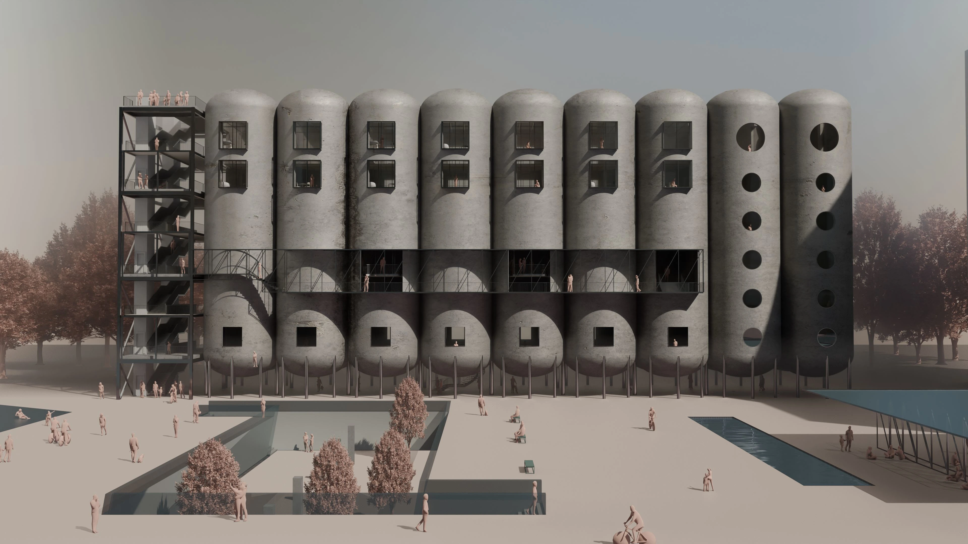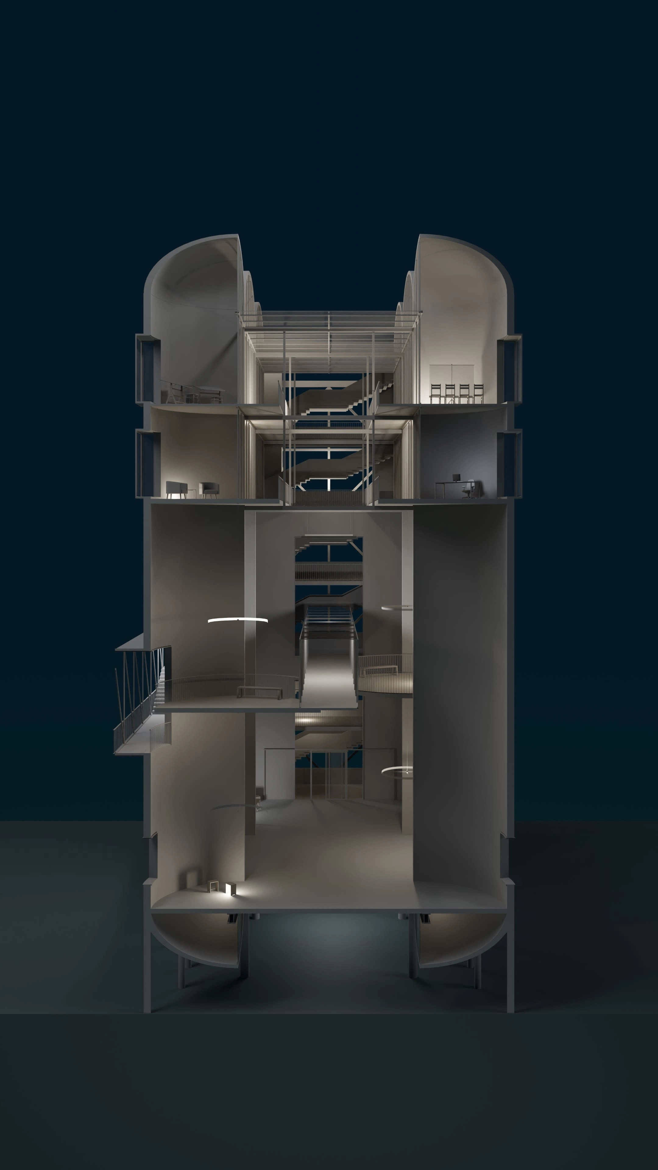 In this architecture competition project, I provided both artistic and functional 3D visualizations for the innovative repurposing of silos in Argentina.