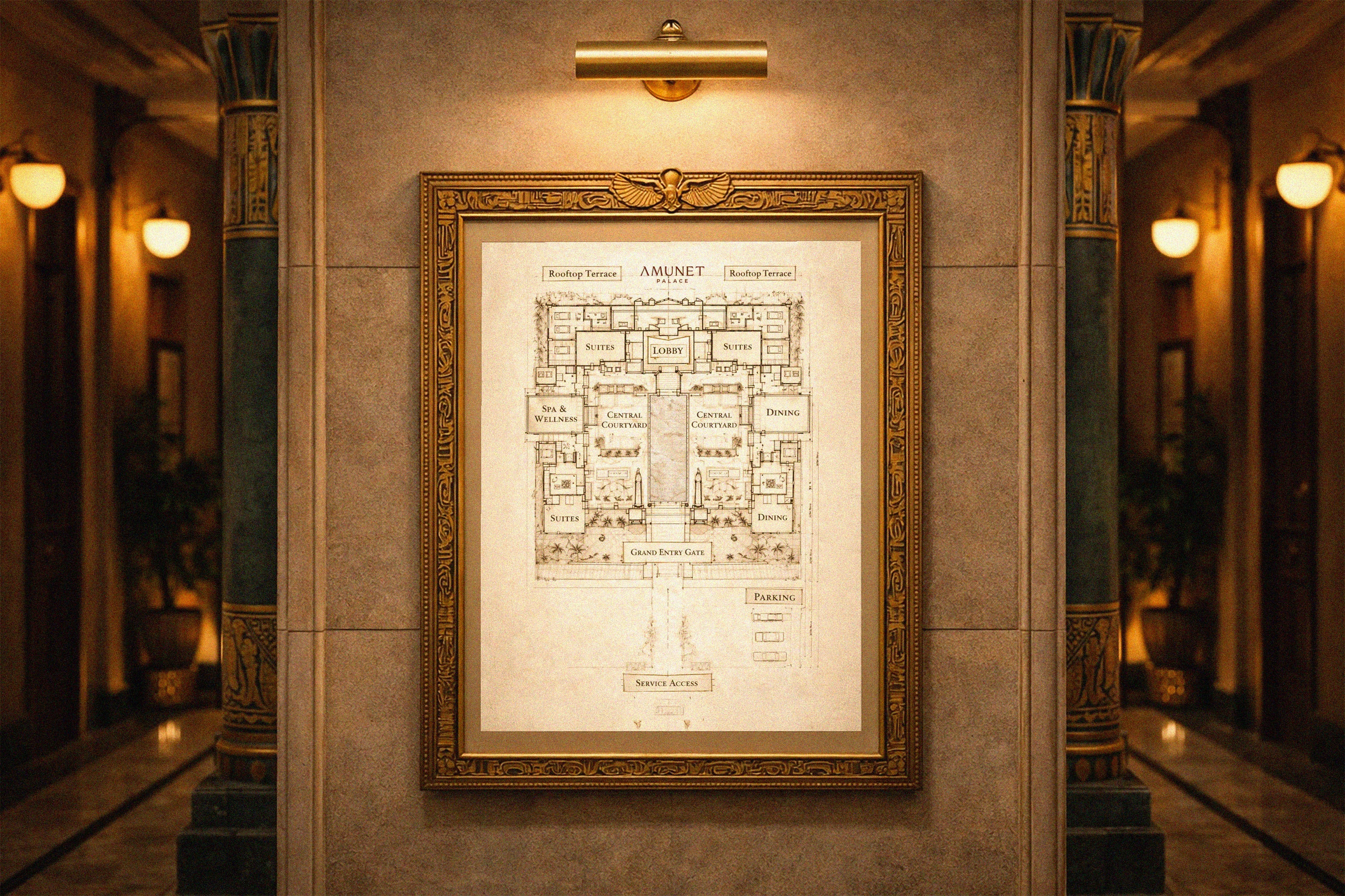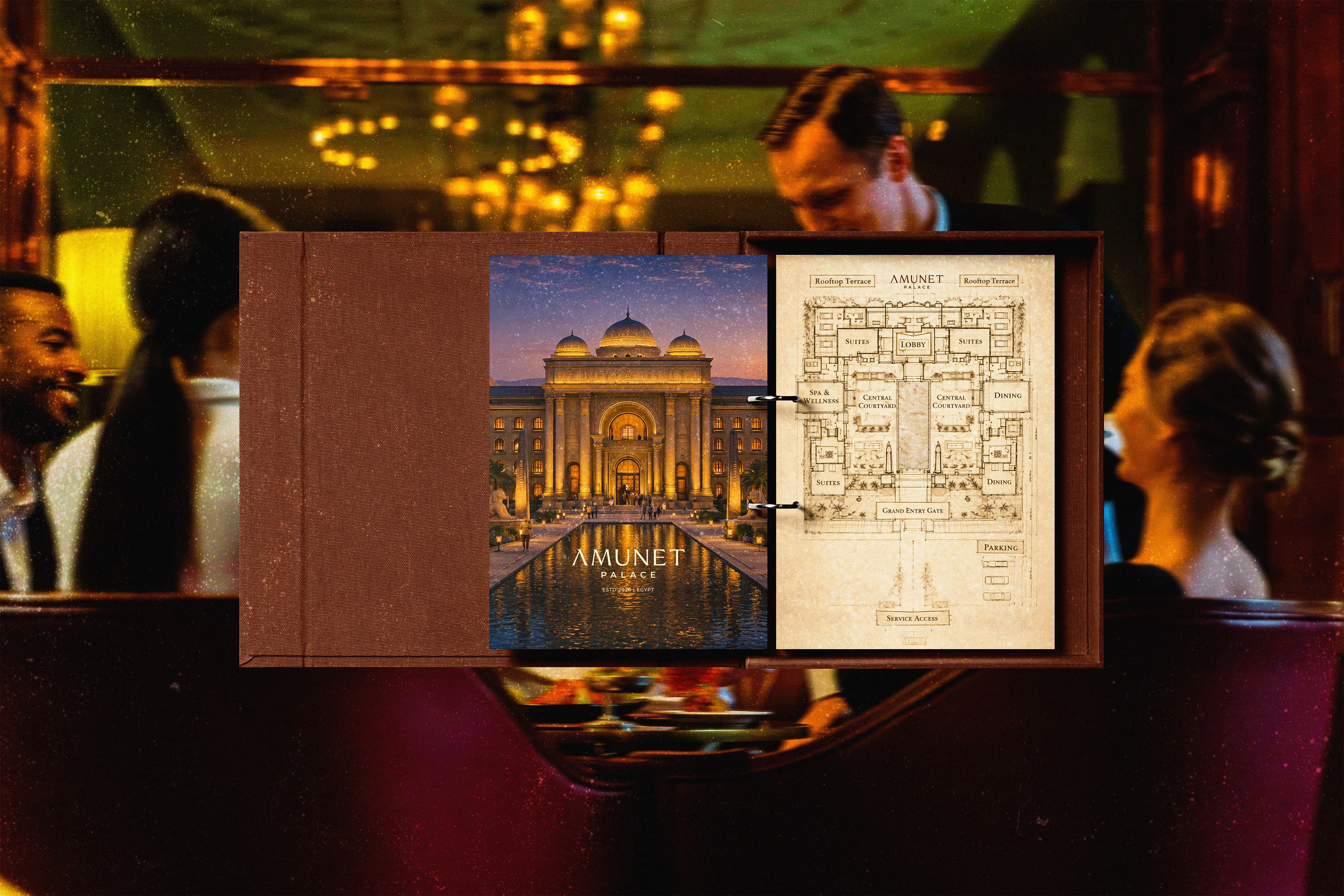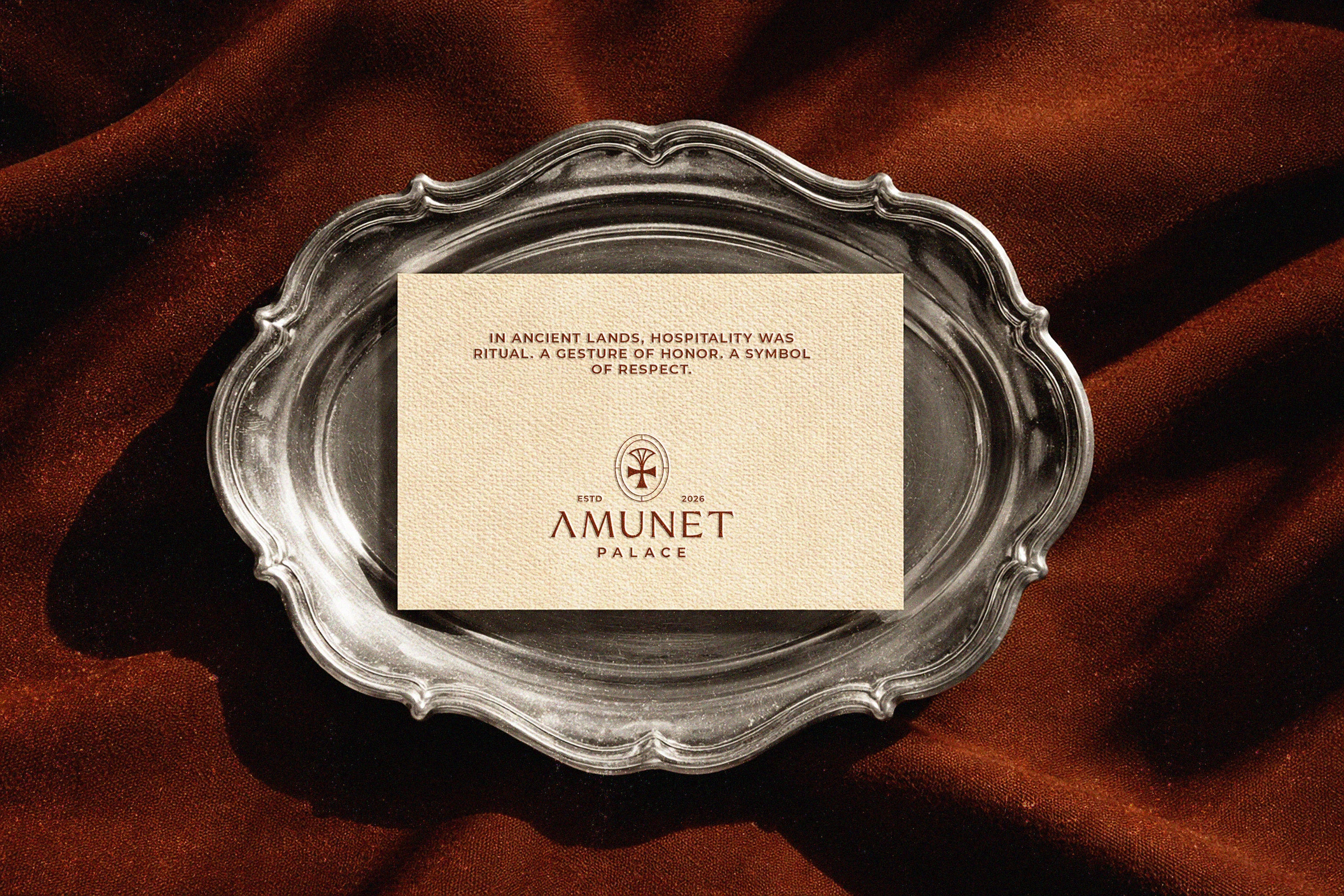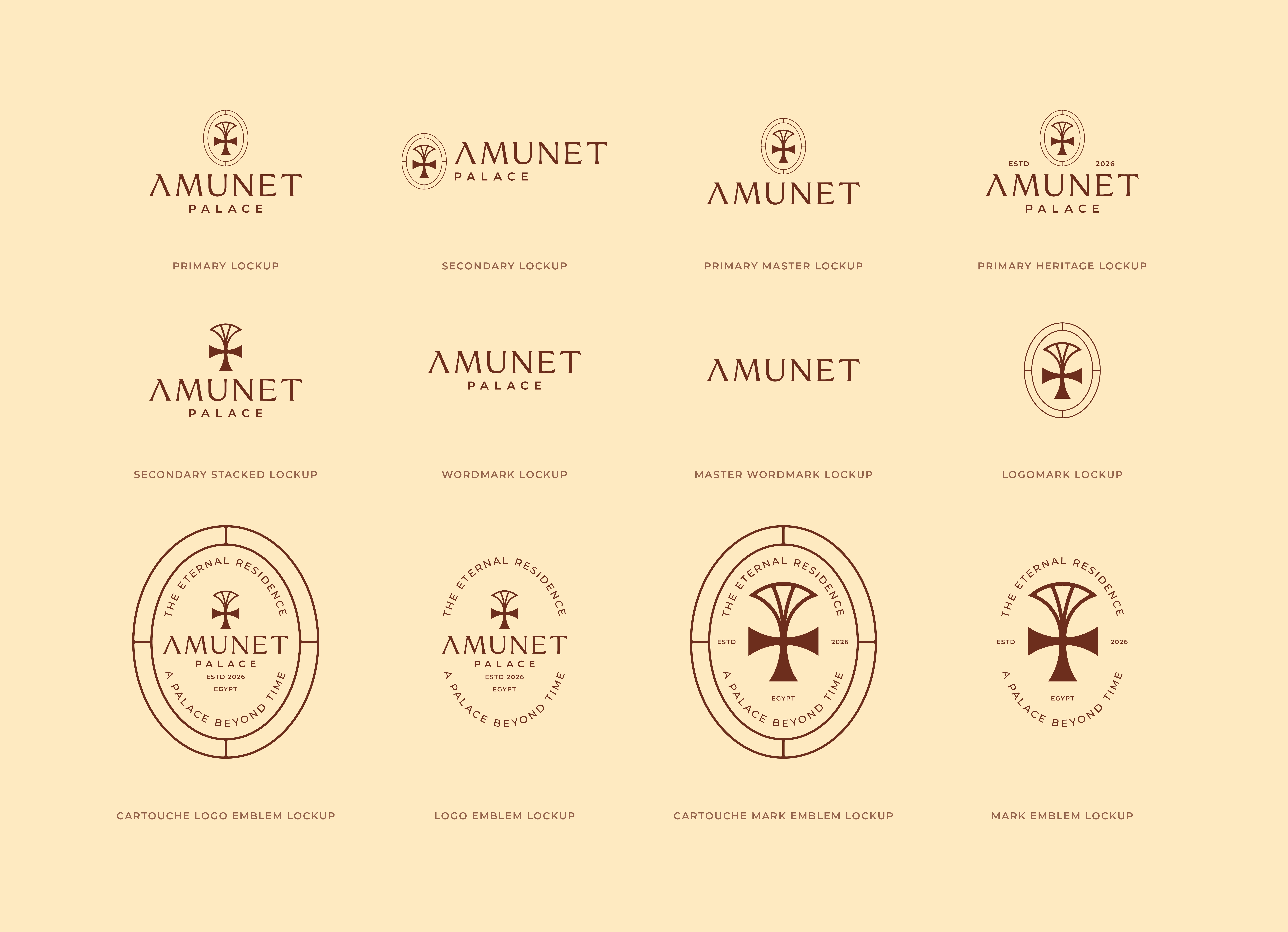 Amunet Palace is a luxury heritage hospitality brand inspired by the timeless symbolism and monumental architecture of ancient Egypt. Rooted in the fusion of the Lotus and the Ankh, the identity represents renewal and eternity, a philosophy translated into architecture, interiors, and visual language. Designed as a “Palace Beyond Time,” the brand merges sacred symbolism with refined modern luxury, creating a hospitality experience that feels both historic and eternally contemporary.