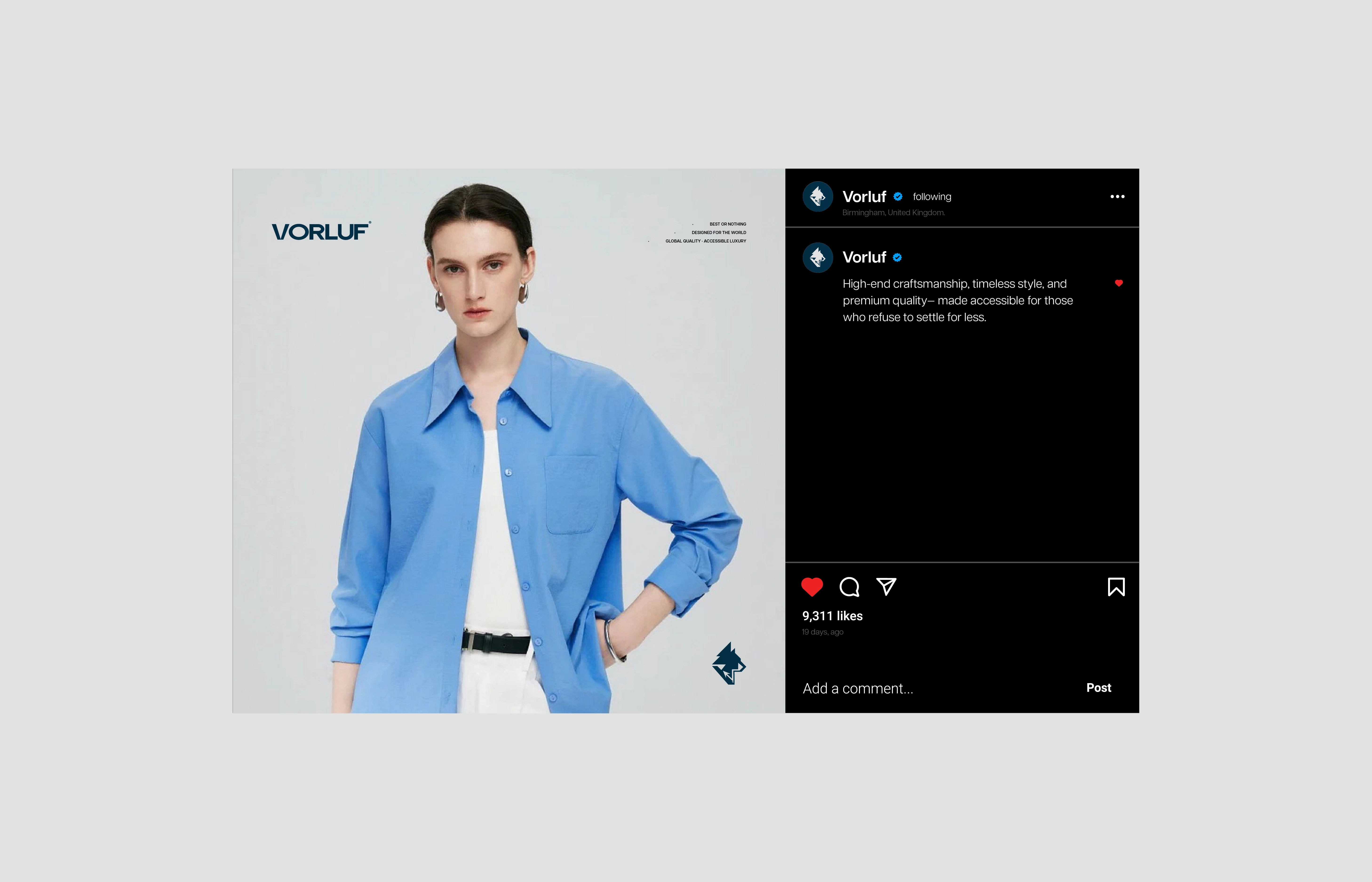 Vorluf is an apparel brand, and it's known for its premium fashion and luxurious sense.