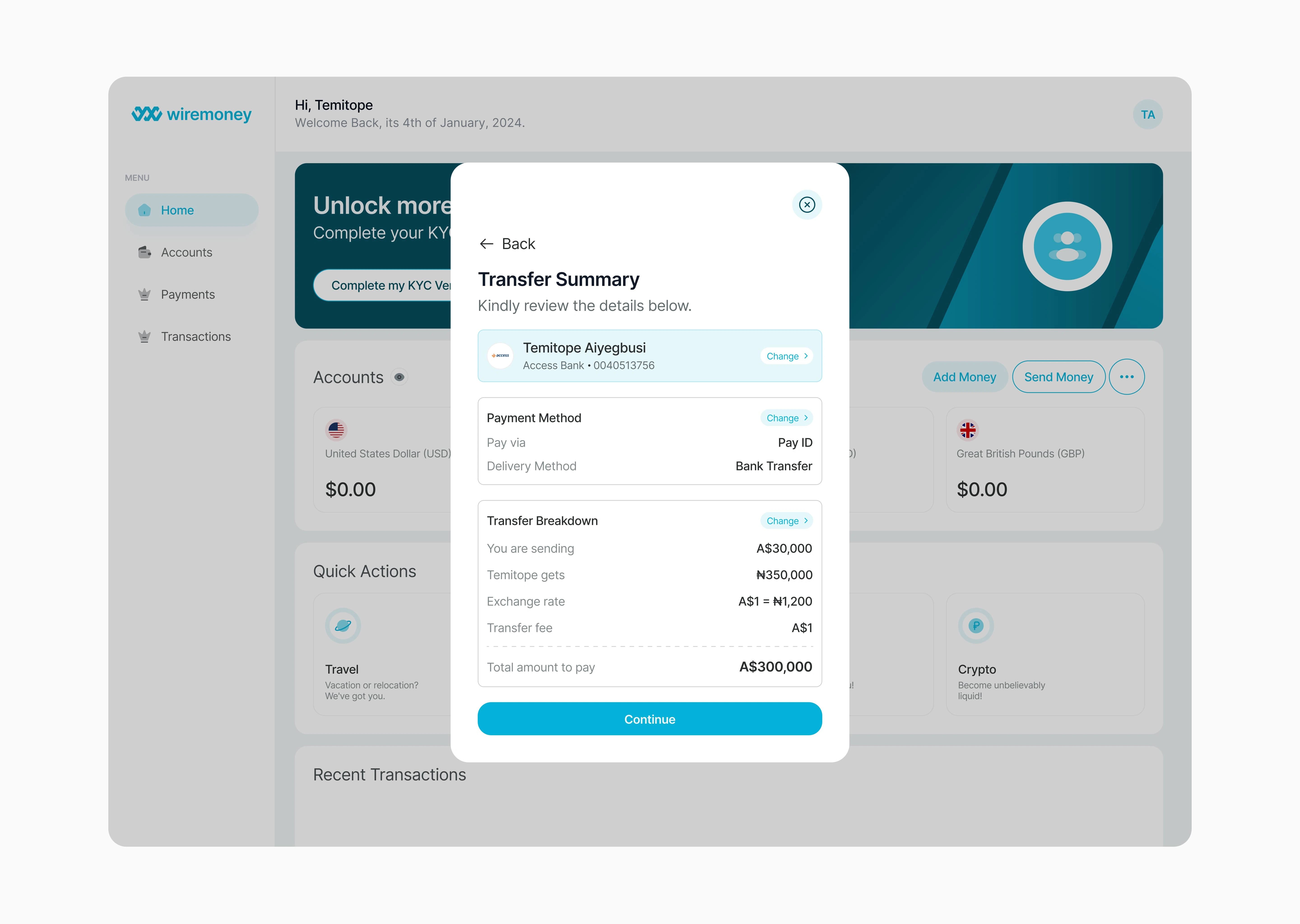 Wiremoney is an innovative and dynamic fintech company dedicated to revolutionising cross border money transfer from Australia to Nigeria.