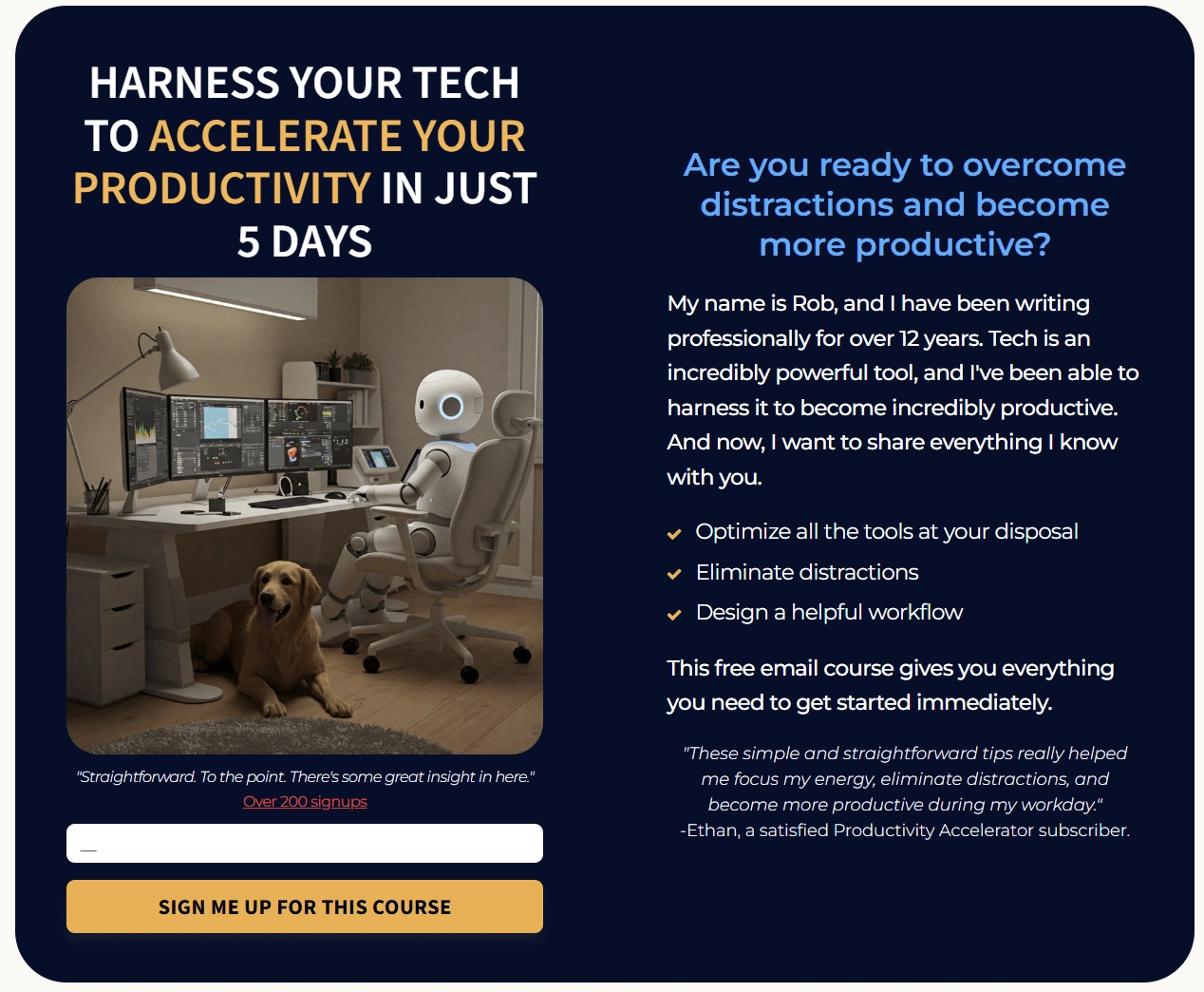 To highlight what an educational email course can do, I created one about a topic that I'm passionate about: using technology to be more productive. Over 200 people have signed up for the course, and I've gotten a lot of positive feedback.