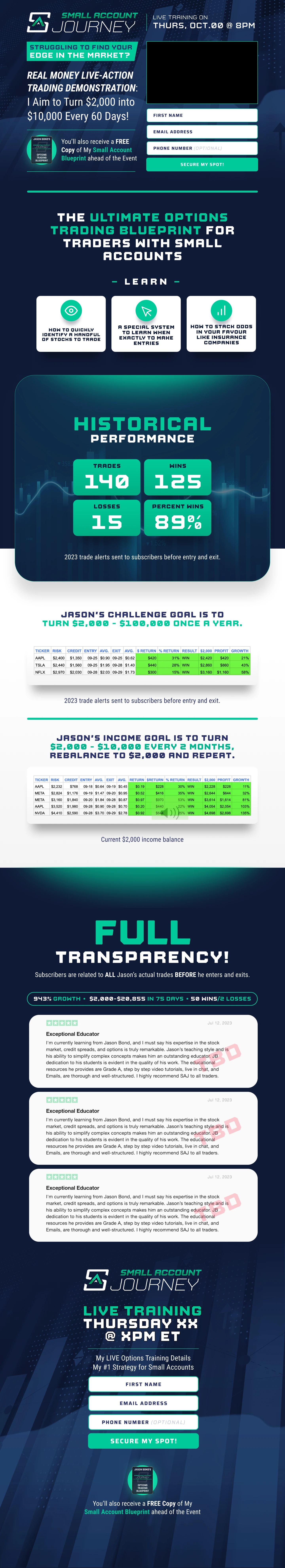 A collection of high-converting, eye-catching landing page designs, spanning a variety of industries from eComm, Finance, Health & Wellness.