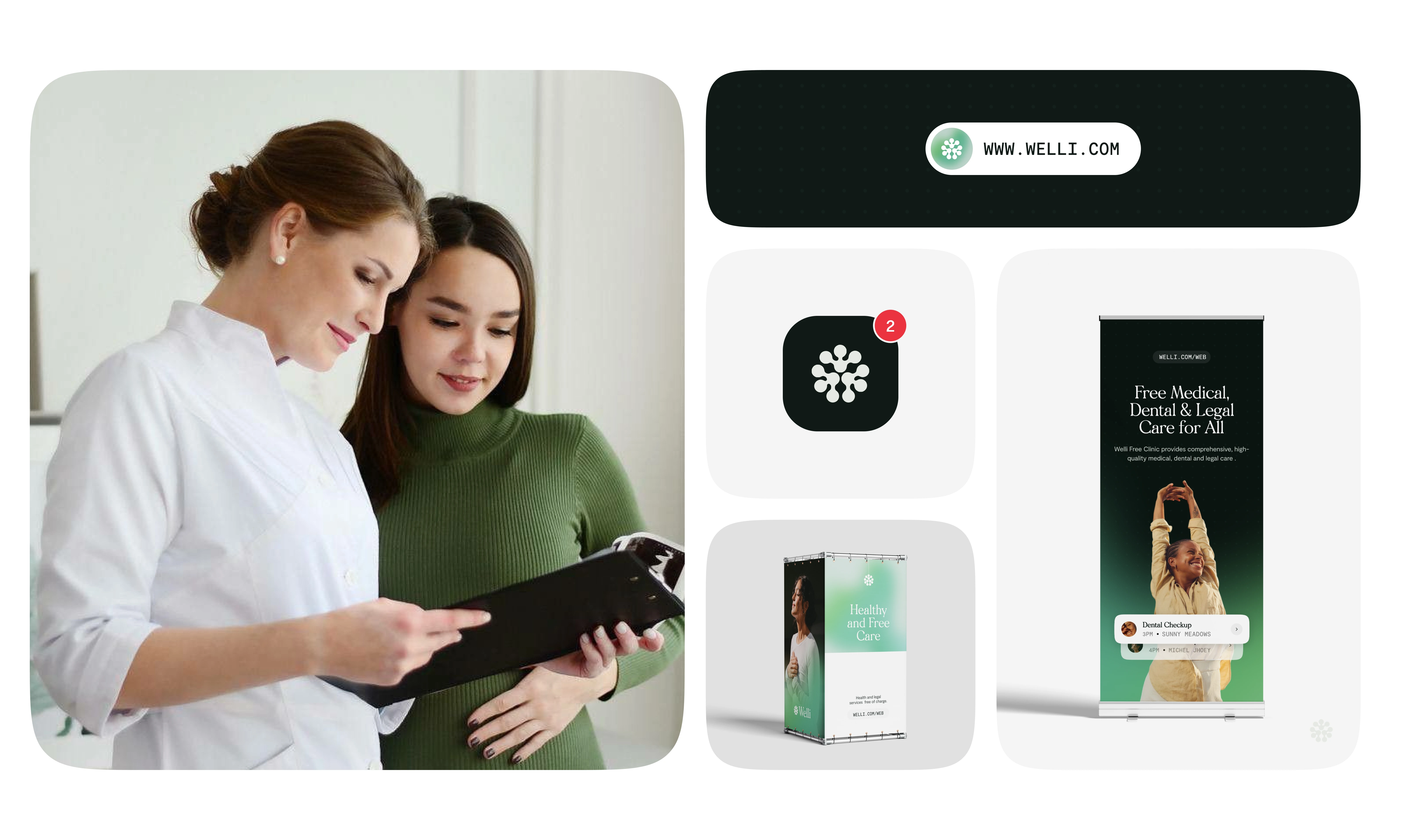 Welli is a modern healthcare startup focused on making medical care accessible for everyone. This project covers the full visual identity and UI/UX design.