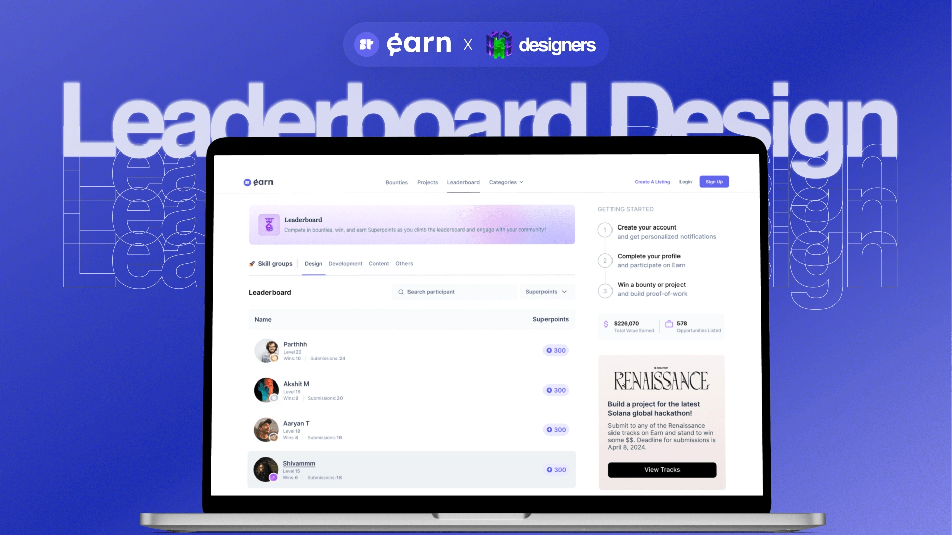 The goal was to design a Leaderboard for the Superteam Earn platform, which helps talent contribute to crypto projects through bounties and freelance gigs.