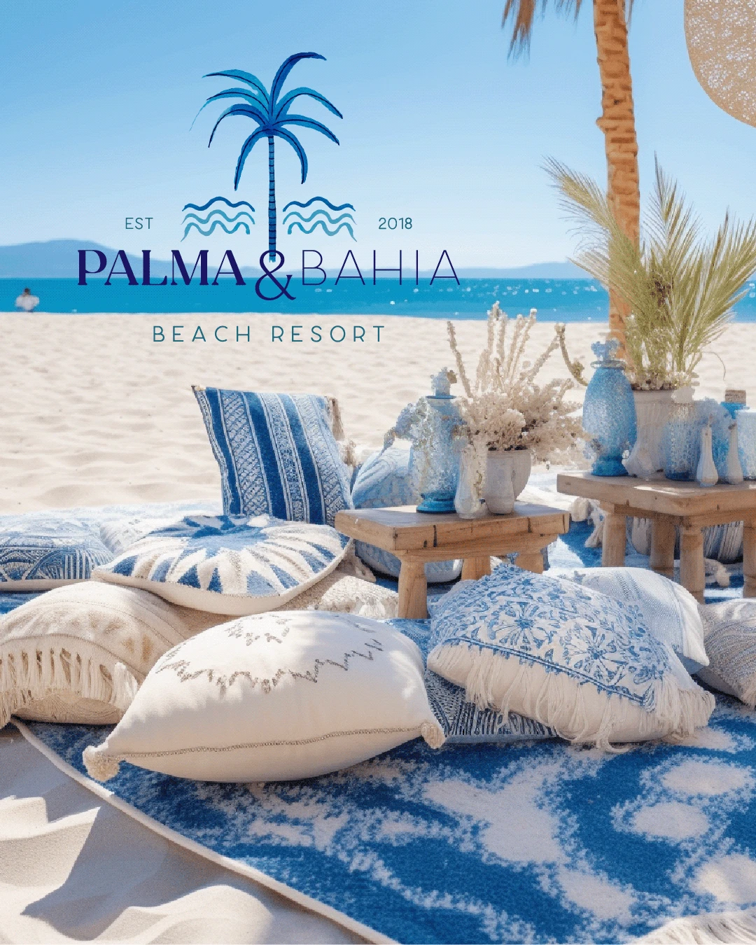 Brand design and illustration for a beach resort in Palma de Mayorca, Spain.