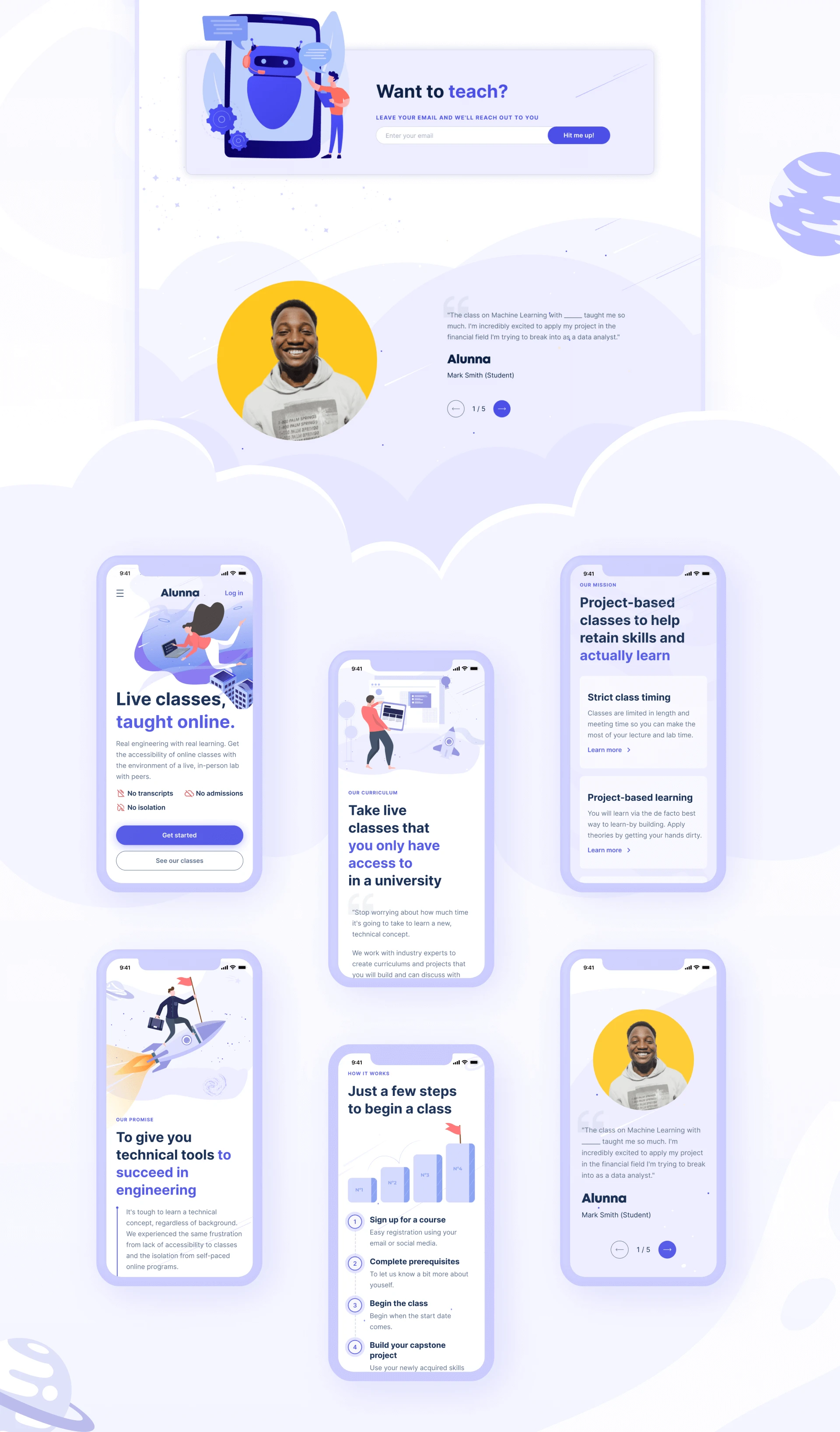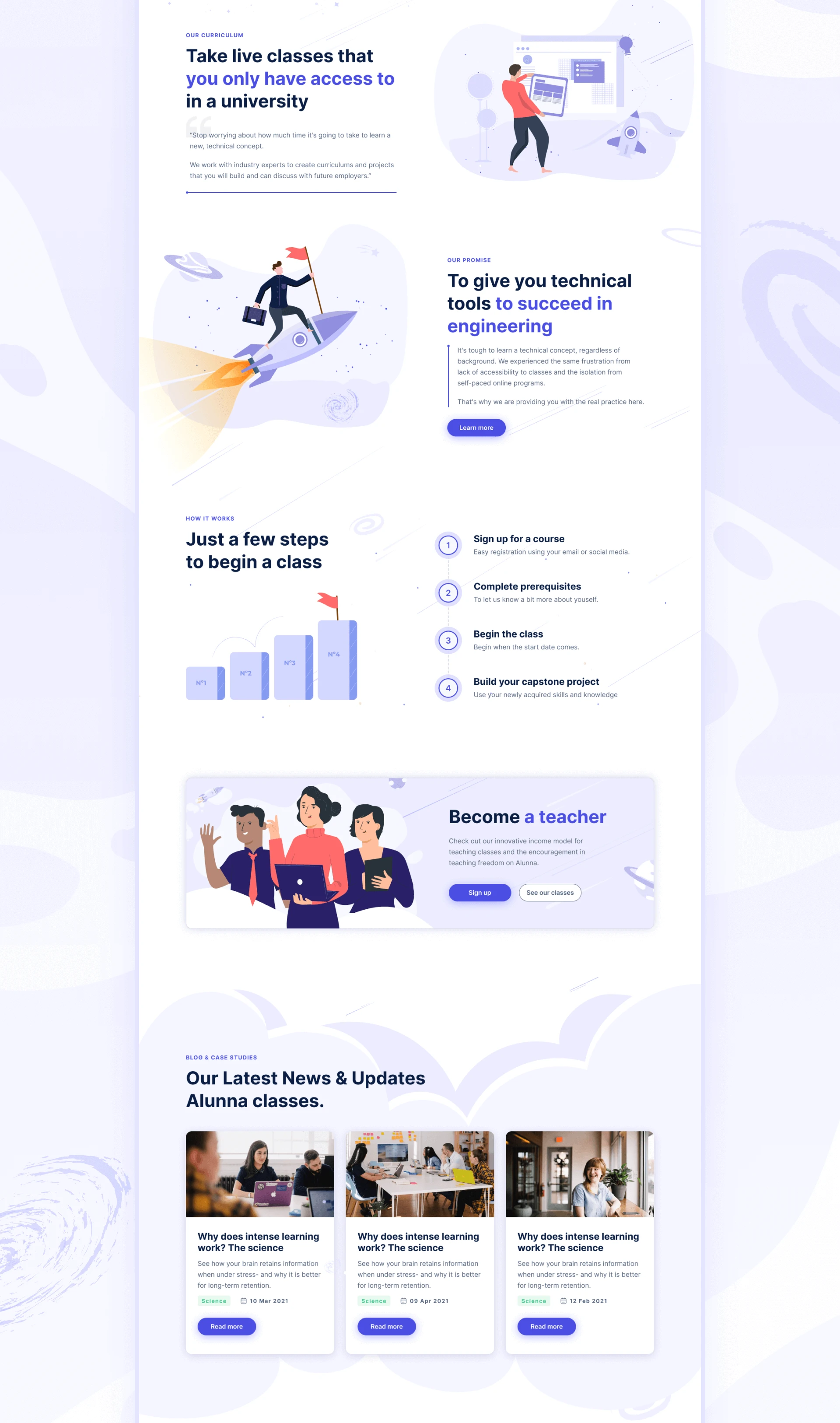 Alunna is an interactive online learning platform for aspiring developers, built to connect students and teachers in a high-quality space for growth and success