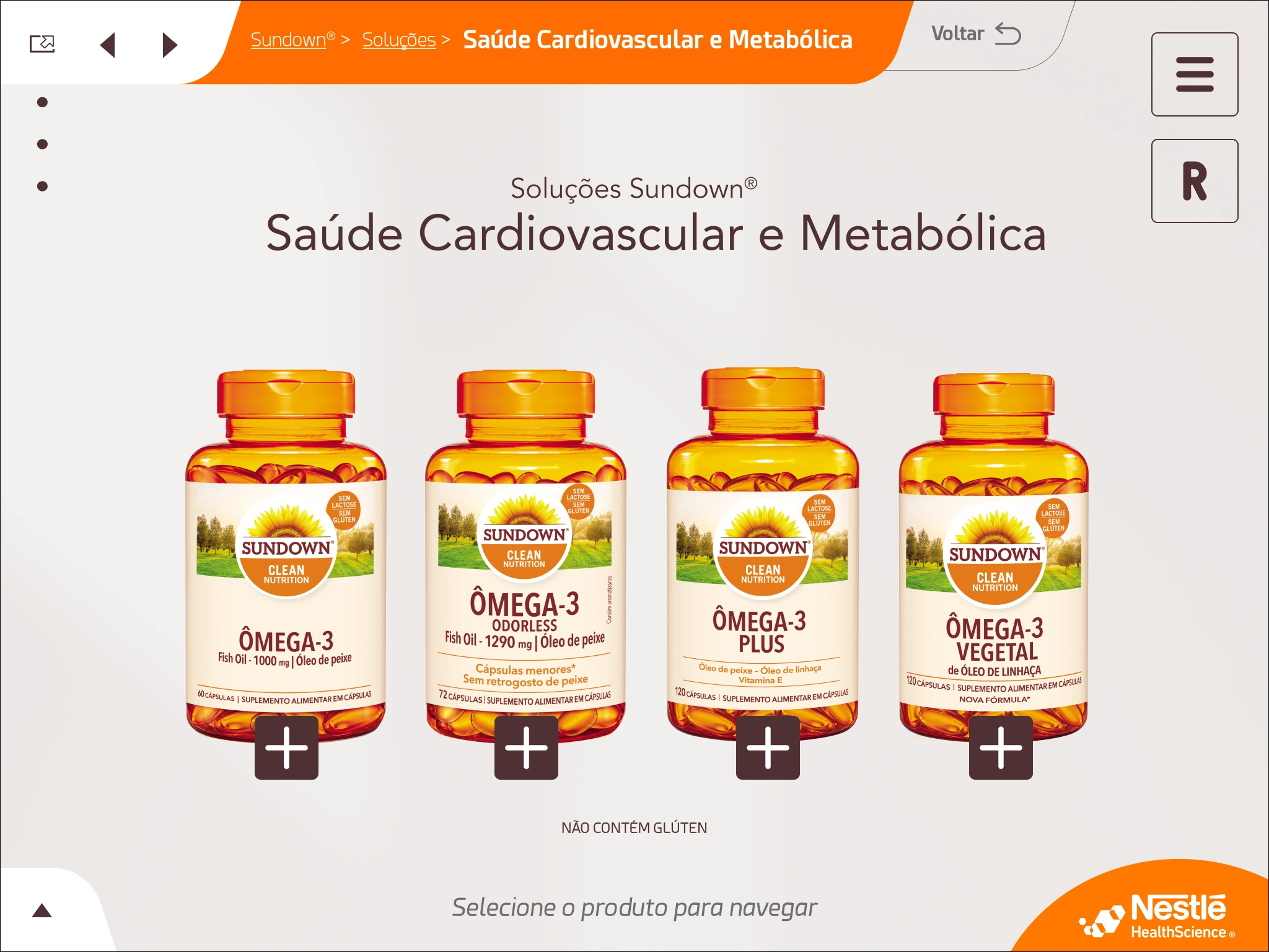 An interactive digital presentation developed as a freelance project for Havas Agency, about Sundown® Omega-3 supplements from Nestlé Health Science.