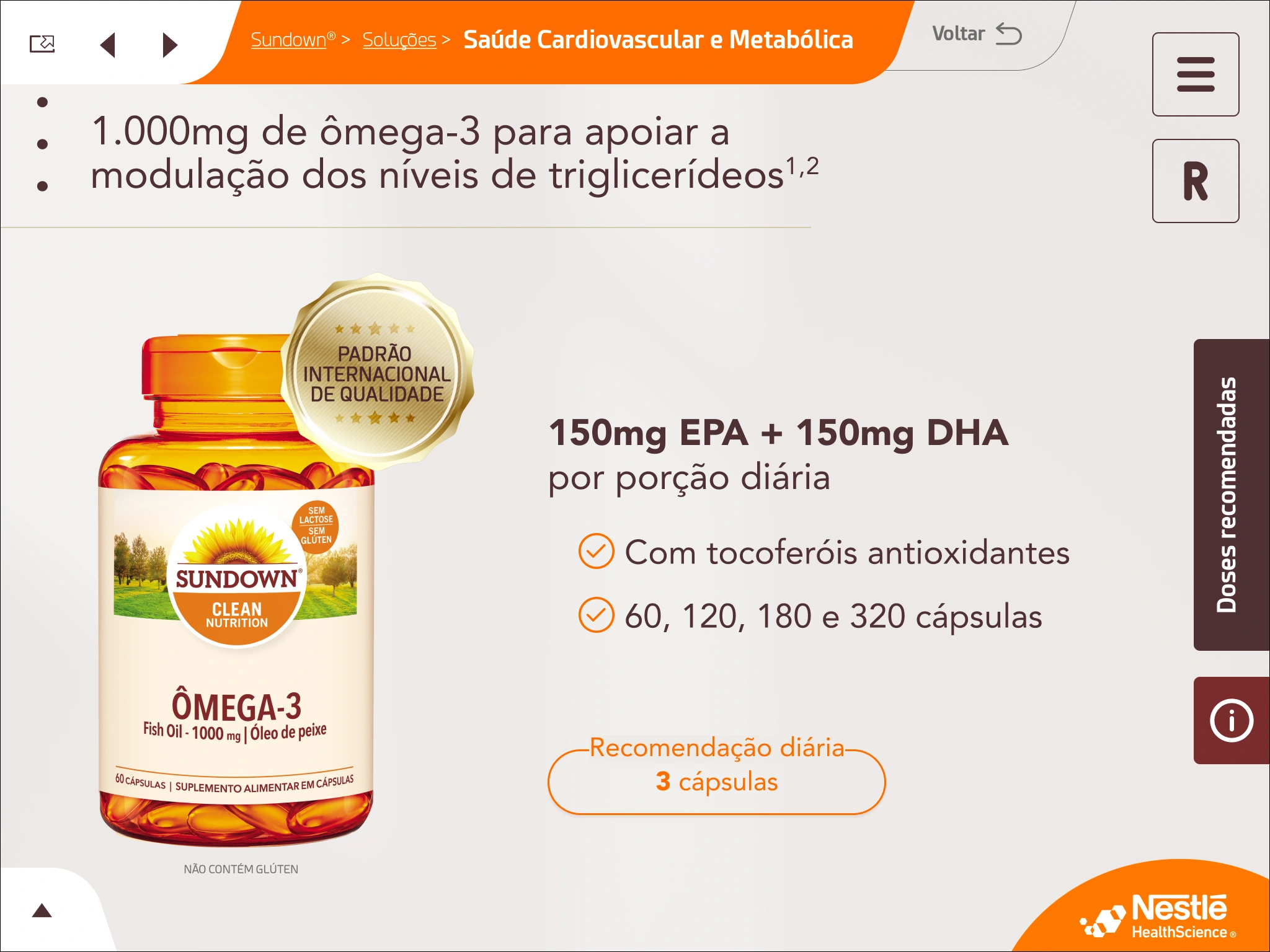 An interactive digital presentation developed as a freelance project for Havas Agency, targeting healthcare professionals to educate them about Sundown® Omega-3 supplements from Nestlé Health Science.